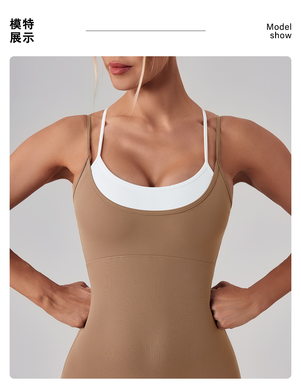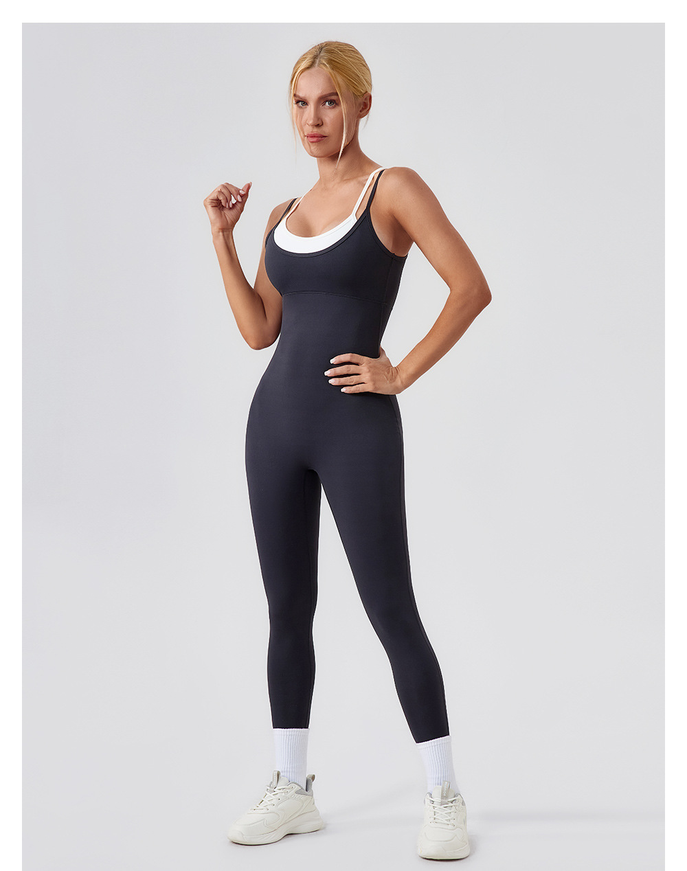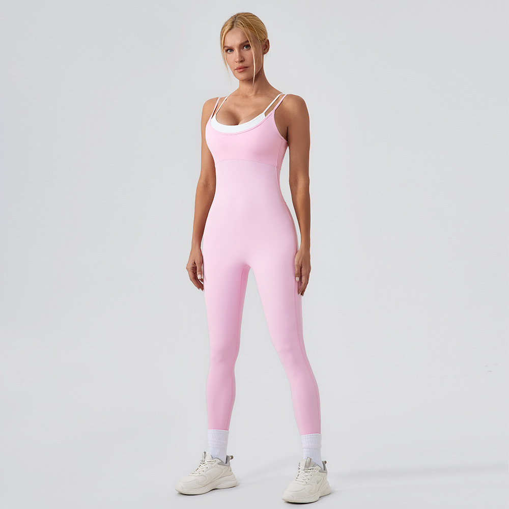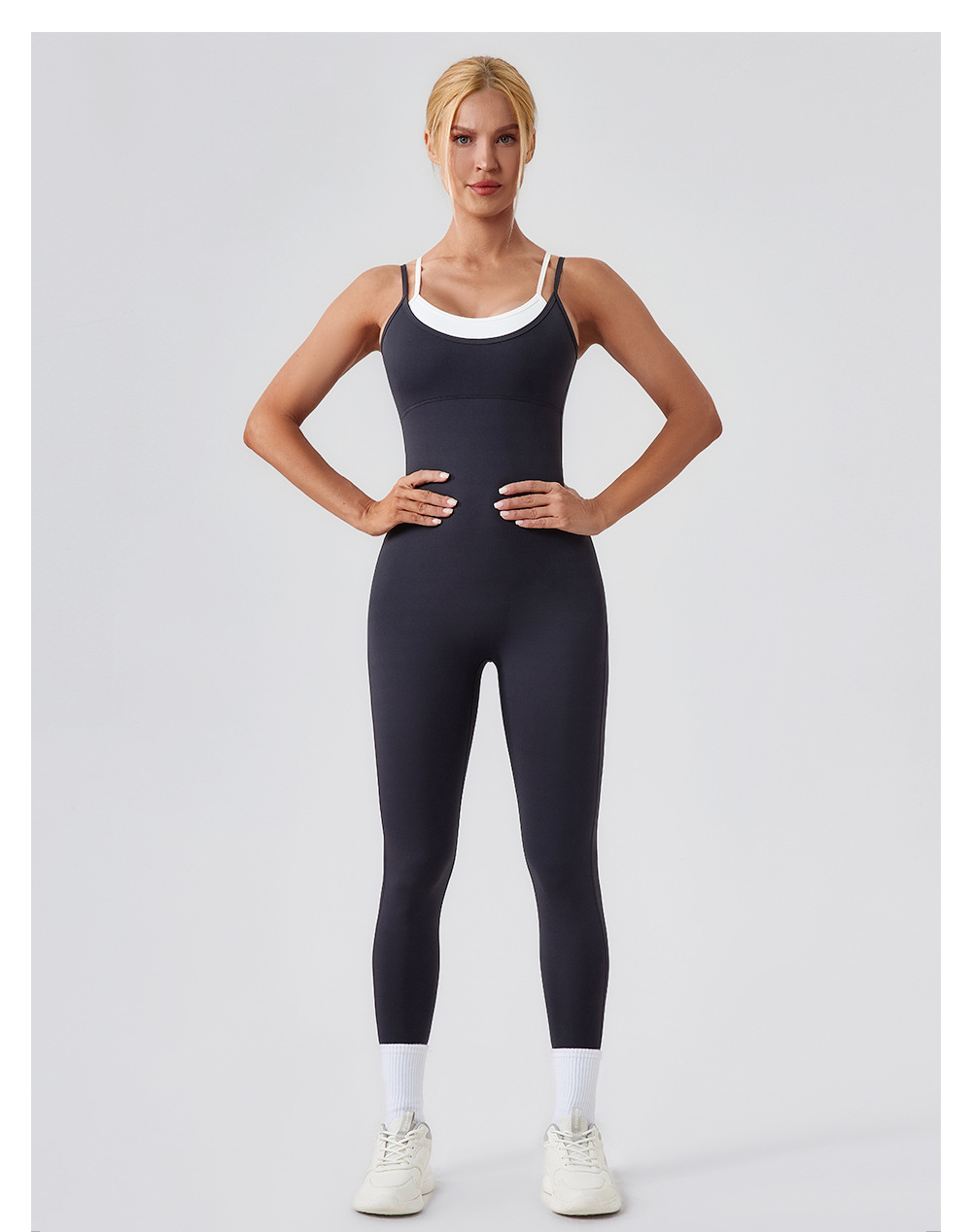 새로운 유럽과 미국의 색상 대비 가짜 투피스 피트니스 세트 슬링 원피스 세트 여성 스포츠 백리스 스포츠 빠른 건조 고탄성 요가 세트