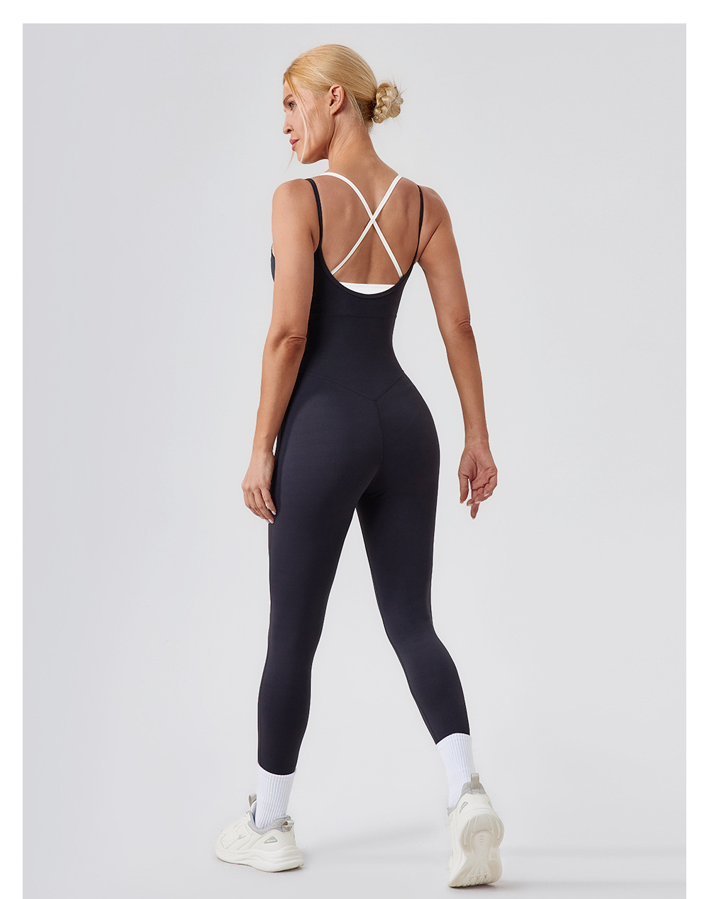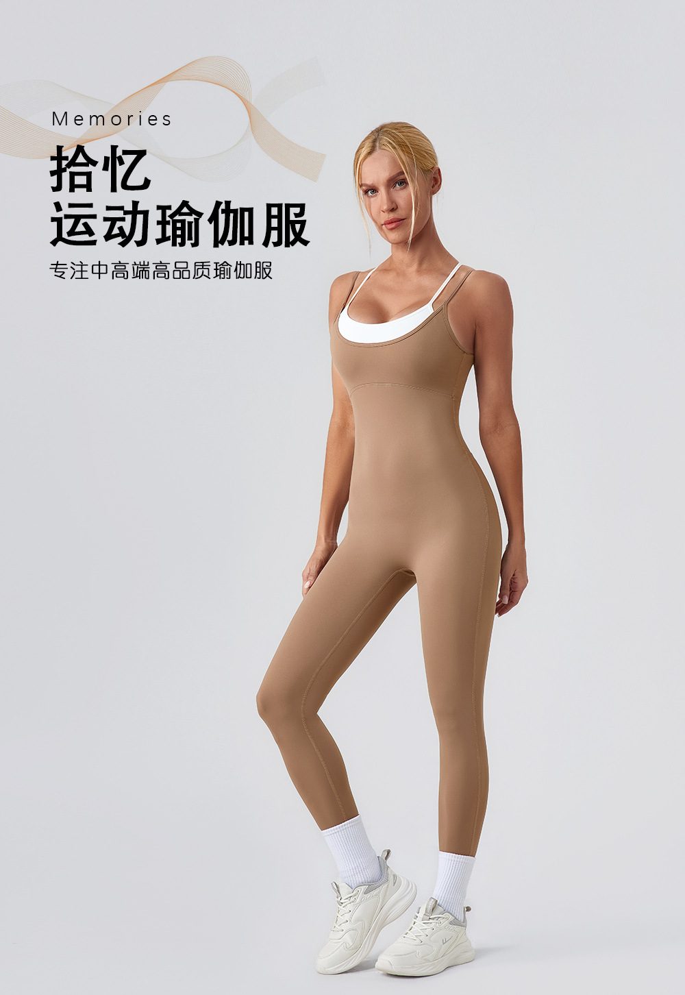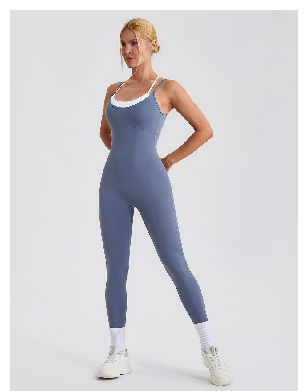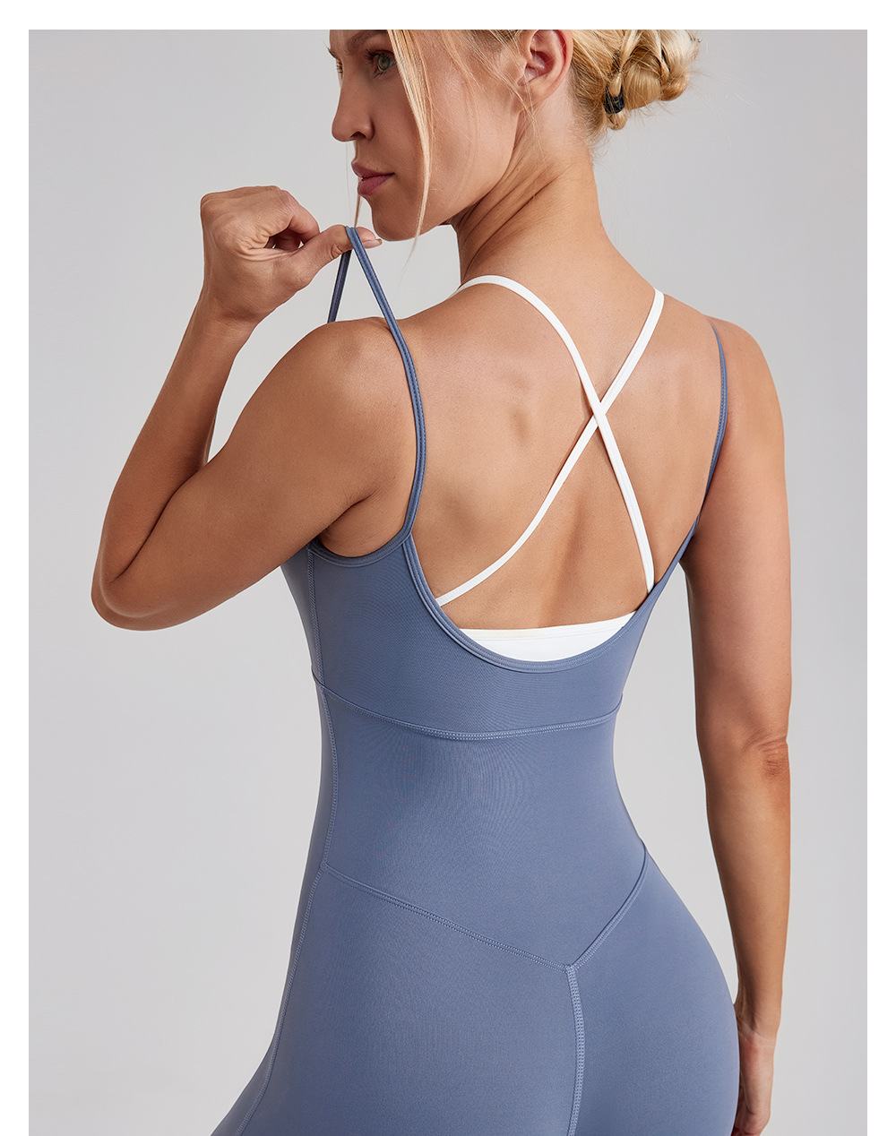 새로운 유럽과 미국의 색상 대비 가짜 투피스 피트니스 세트 슬링 원피스 세트 여성 스포츠 백리스 스포츠 빠른 건조 고탄성 요가 세트