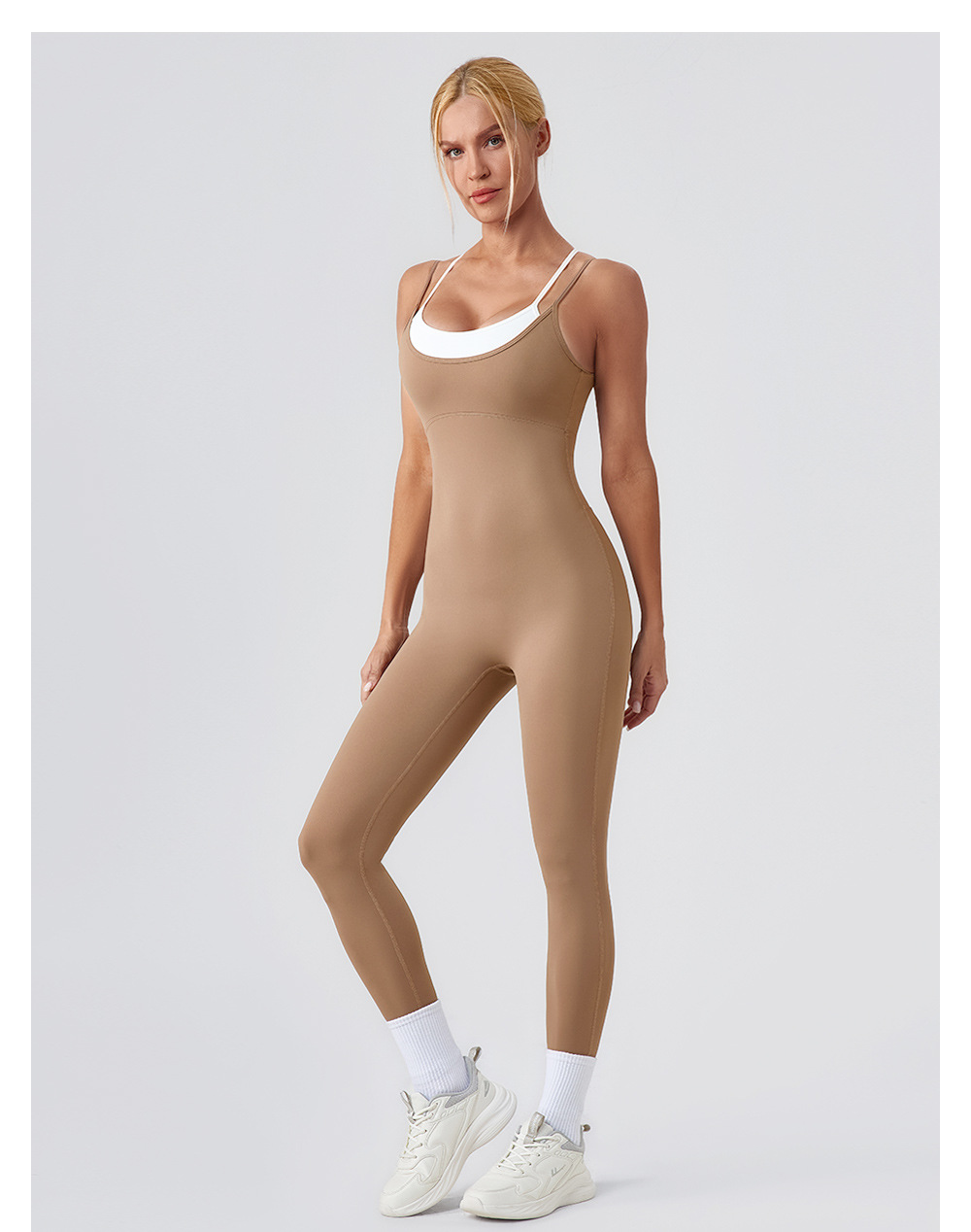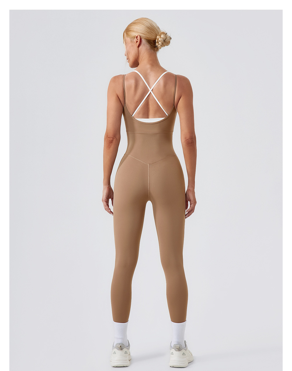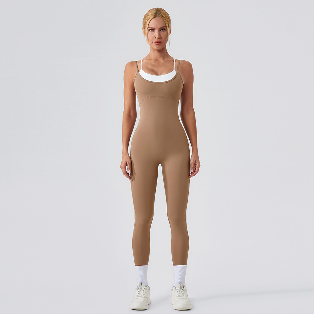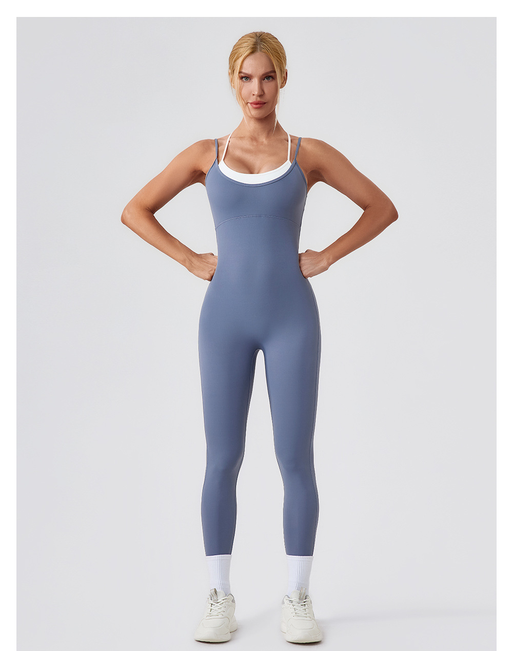 새로운 유럽과 미국의 색상 대비 가짜 투피스 피트니스 세트 슬링 원피스 세트 여성 스포츠 백리스 스포츠 빠른 건조 고탄성 요가 세트