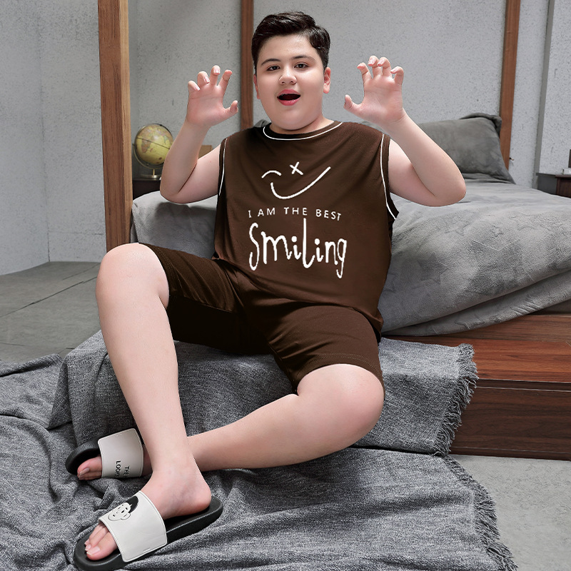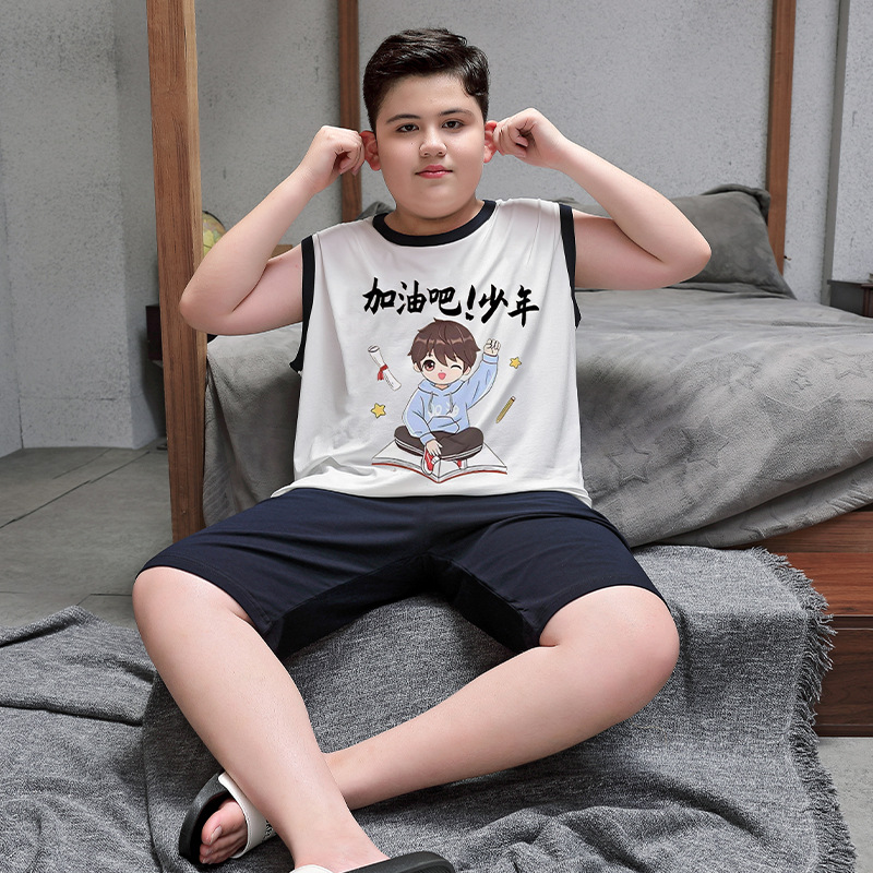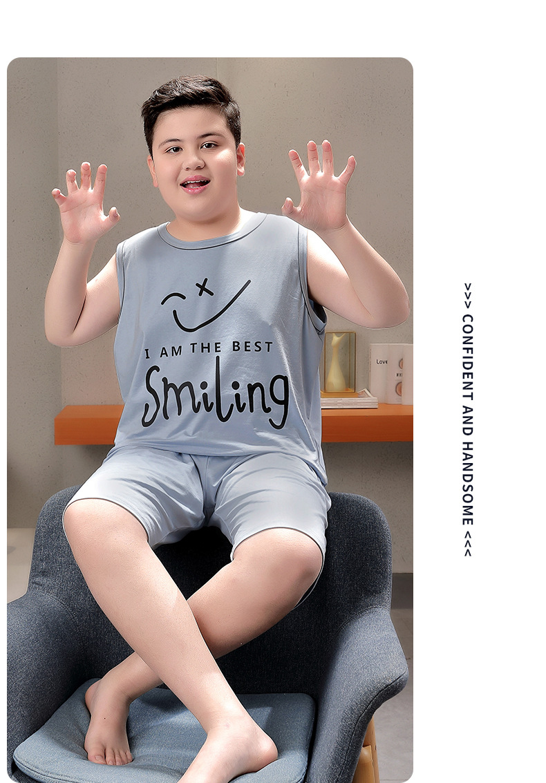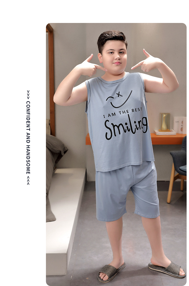 뚱뚱한 어린이 잠옷 소년 2025 새로운 여름 모달 시원한 플러스 사이즈 플러스 사이즈 중대형 어린이 소년 가정복스토어 가기