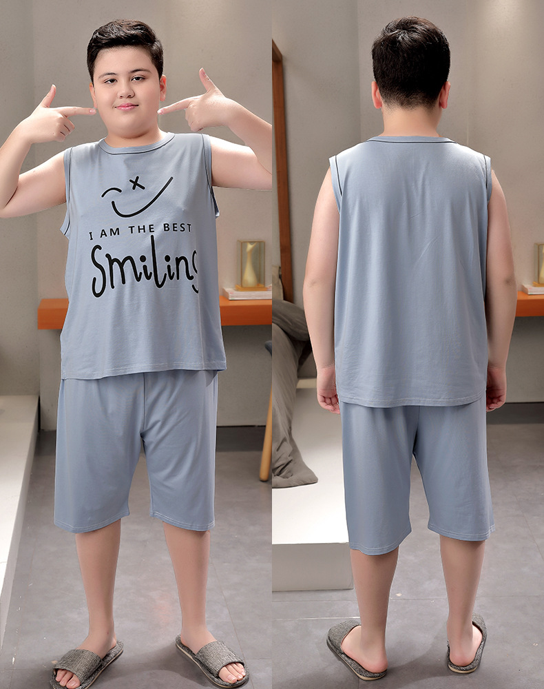뚱뚱한 어린이 잠옷 소년 2025 새로운 여름 모달 시원한 플러스 사이즈 플러스 사이즈 중대형 어린이 소년 가정복