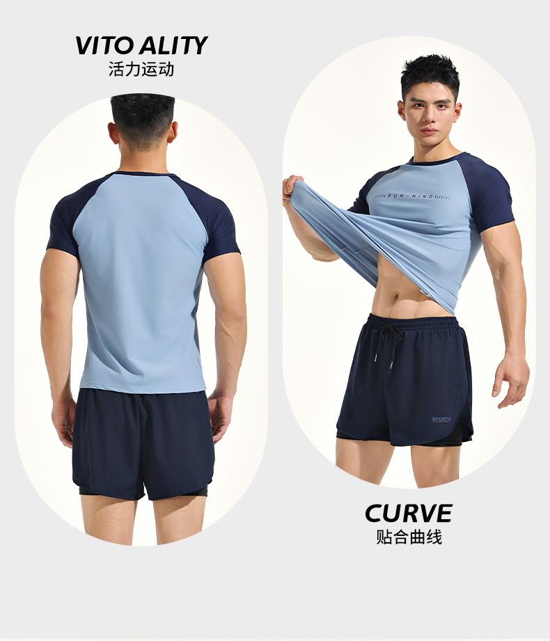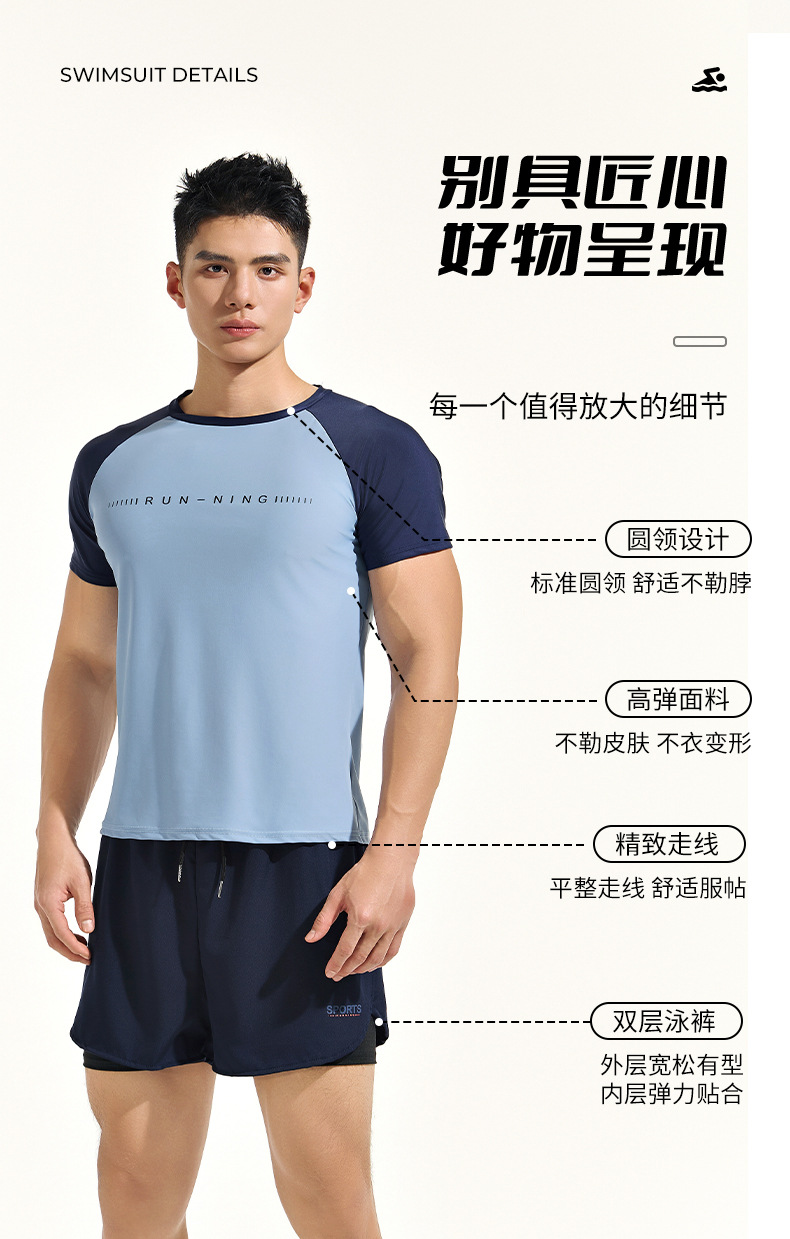 • 그레이 & 블루 수영복 세트 [속건 수영복 + 더블 레이어 수영 트렁크]