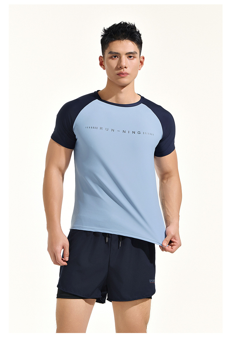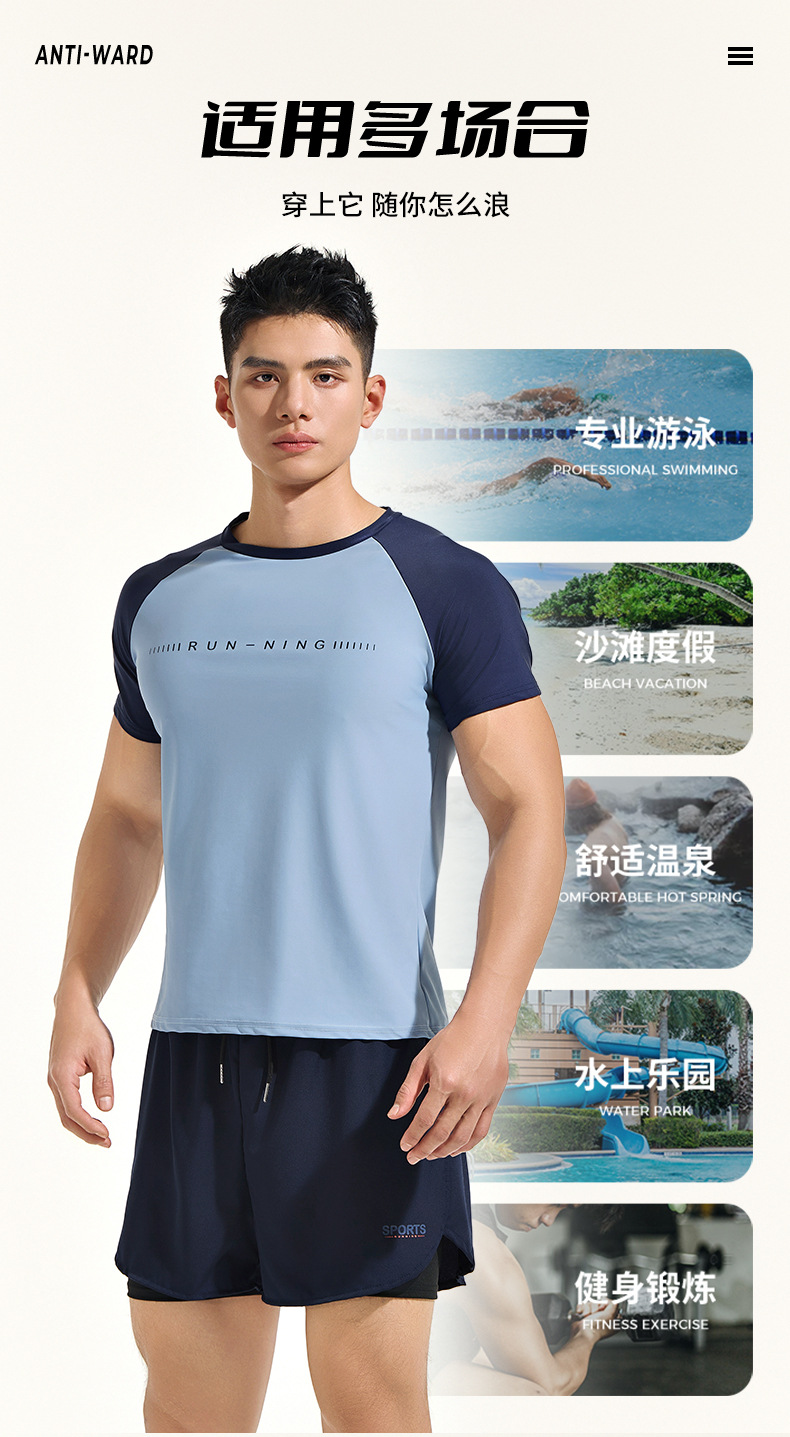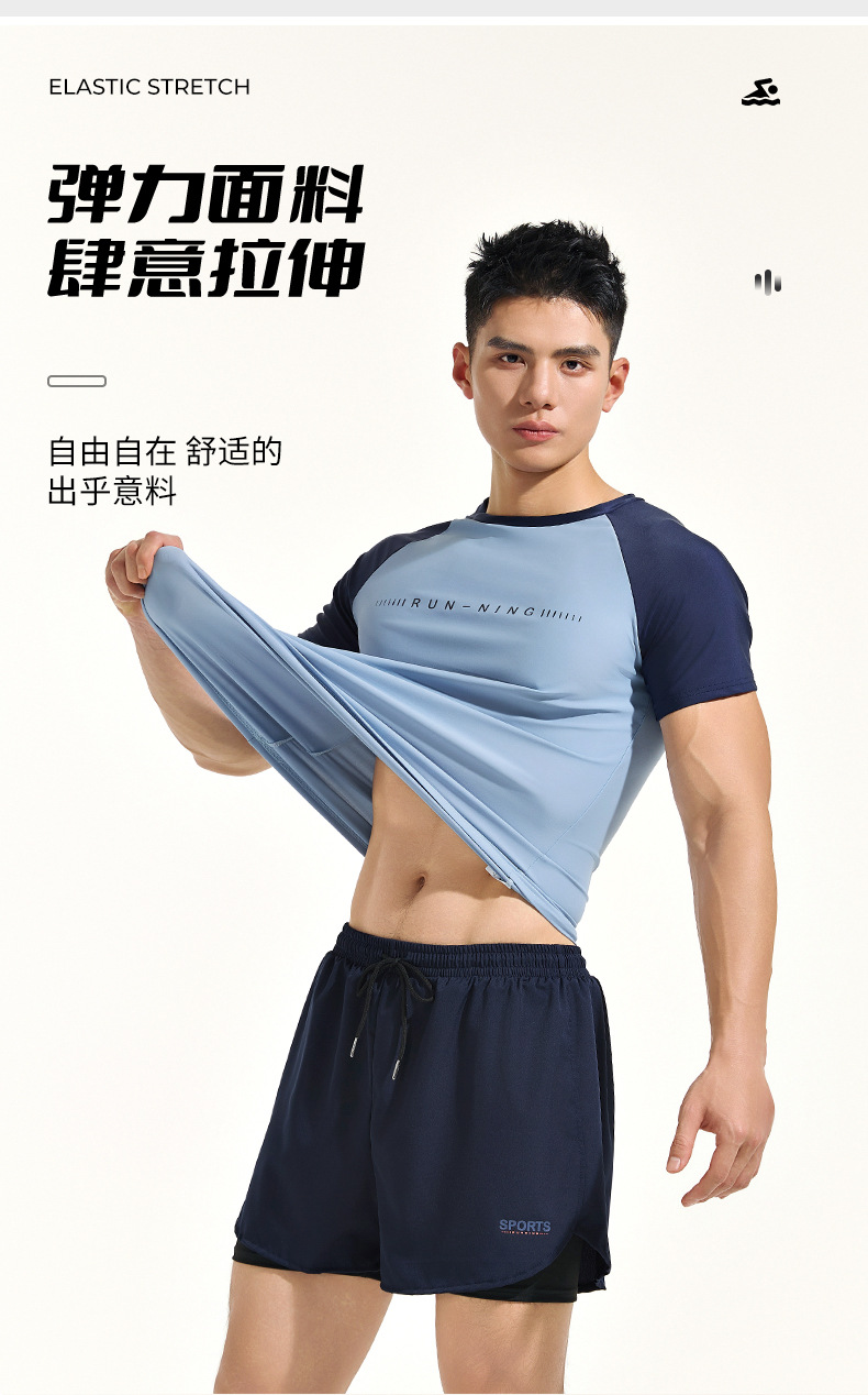 • 하늘색 수영복 세트 [속건 수영복 + 더블 레이어 수영 트렁크]