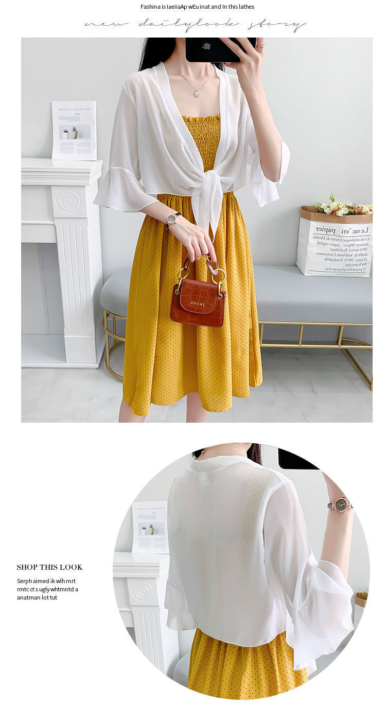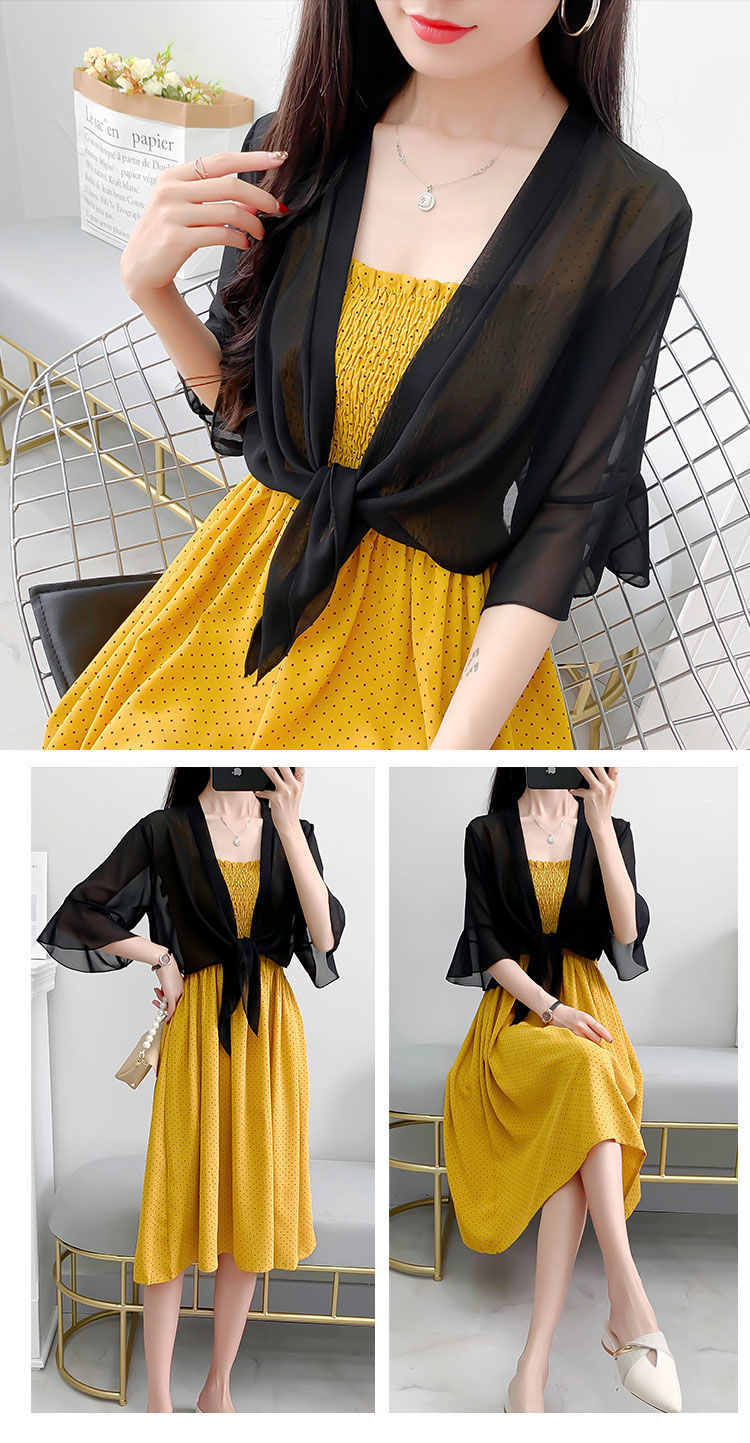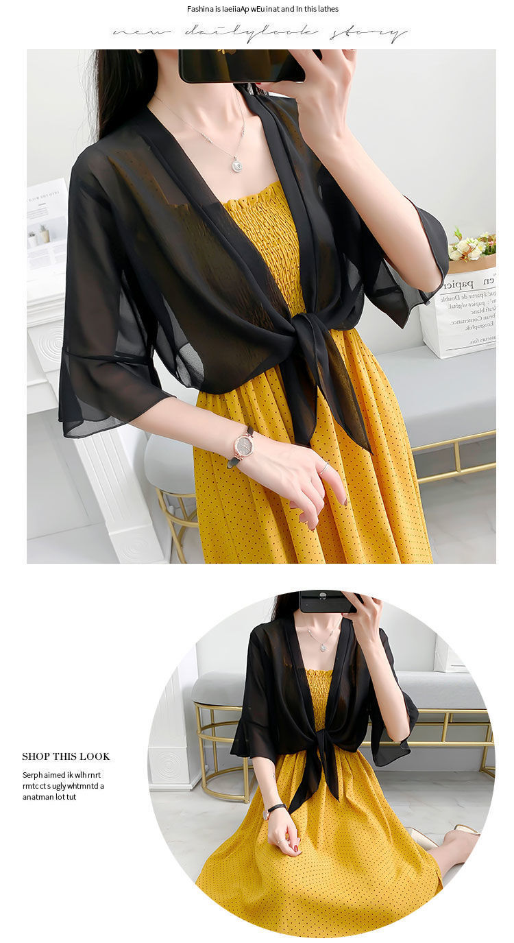 여성용 쉬폰 재킷, 여름용 짧은 아우터, 얇은 가디건, 서스펜더 스커트, 여성용 작은 숄, 레이스 자외선 차단 의류스토어 가기