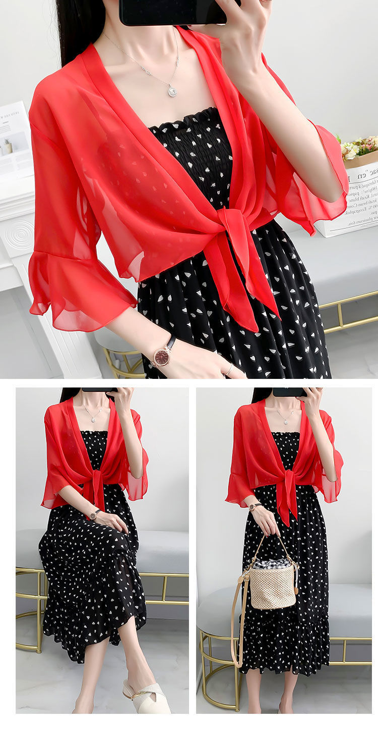 여성용 쉬폰 재킷, 여름용 짧은 아우터, 얇은 가디건, 서스펜더 스커트, 여성용 작은 숄, 레이스 자외선 차단 의류