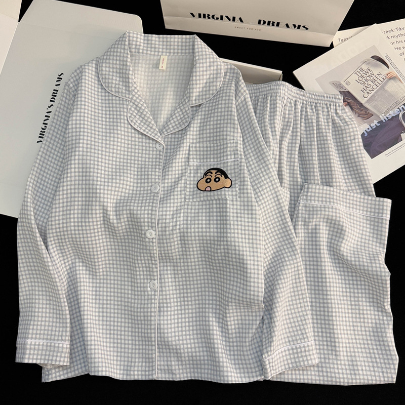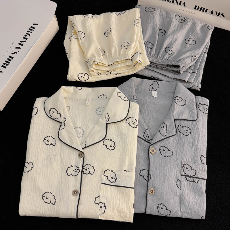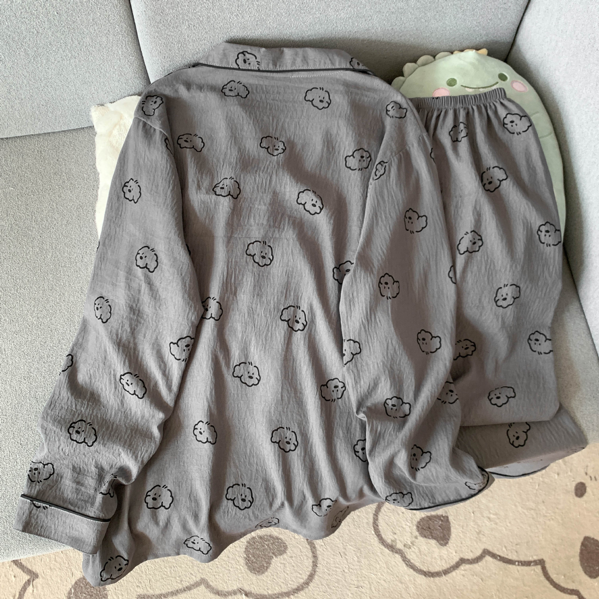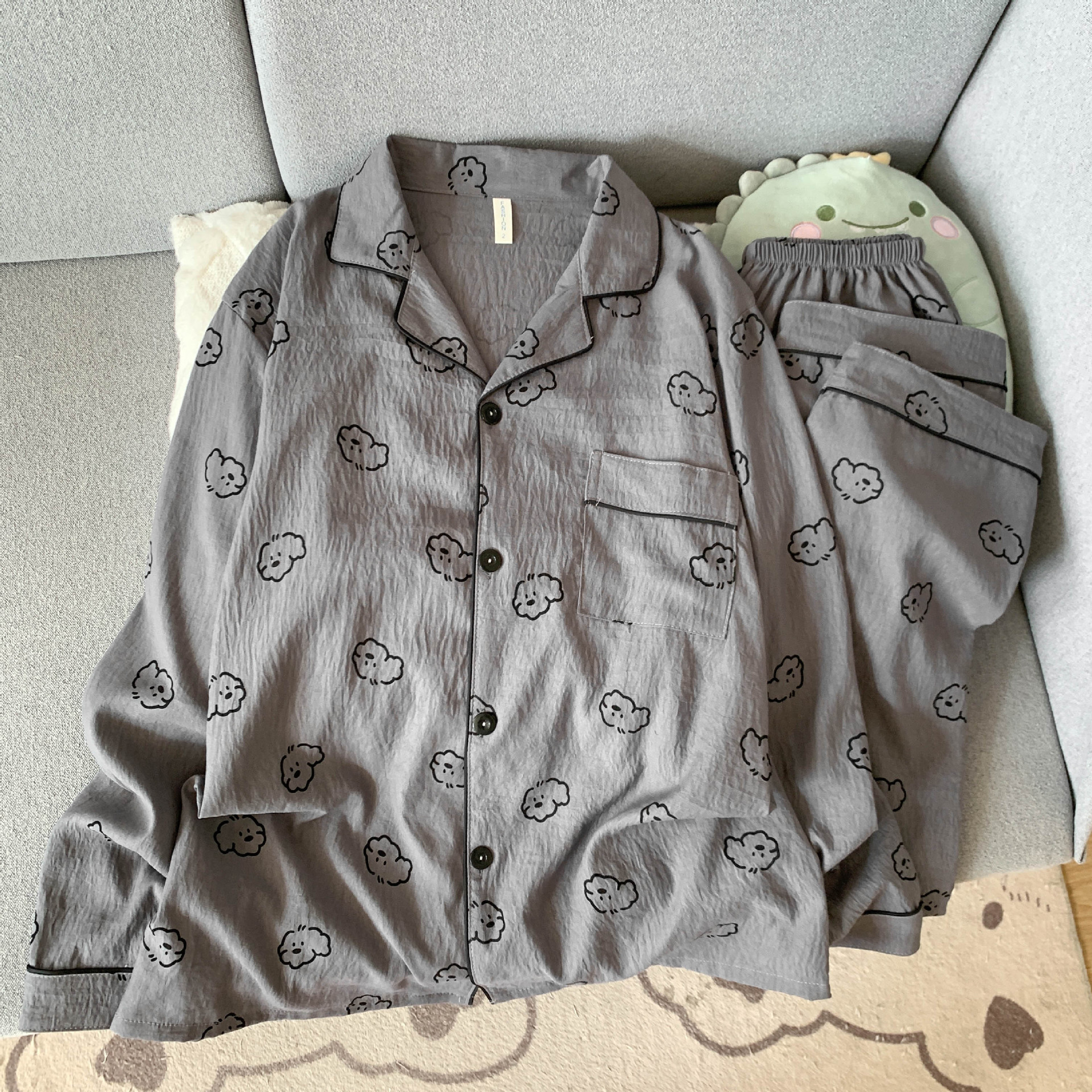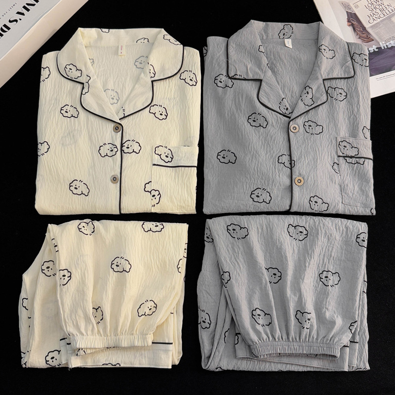 여성과 소년을위한 봄, 가을 커플 잠옷 구름면 가디건 긴팔 바지 만화 가정복 정장 생방송