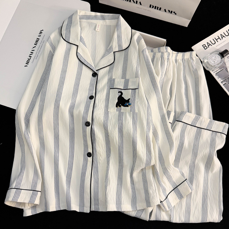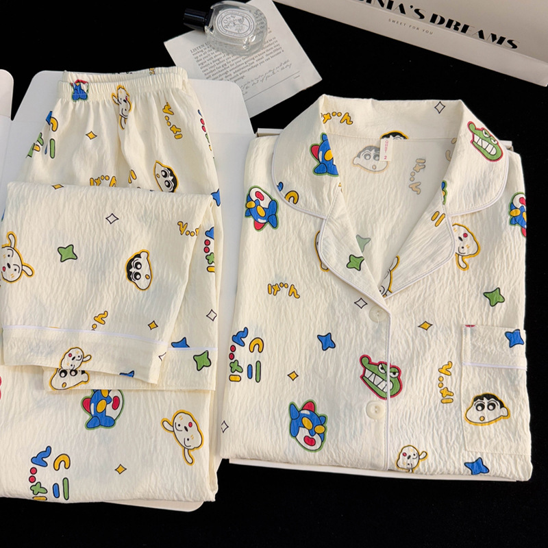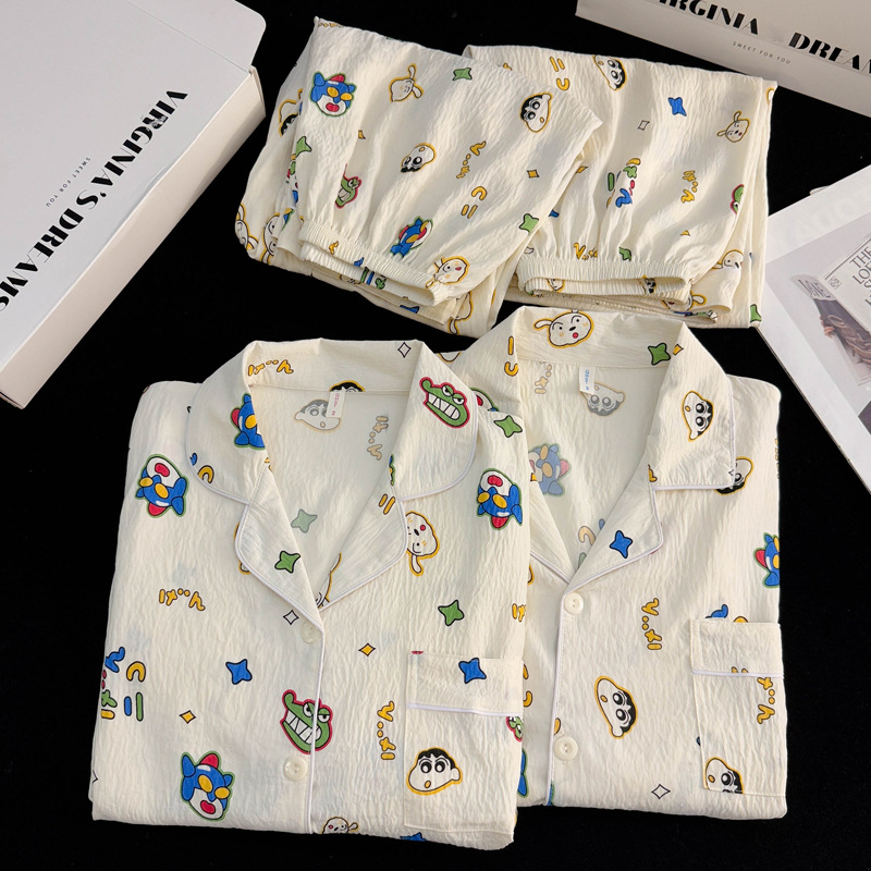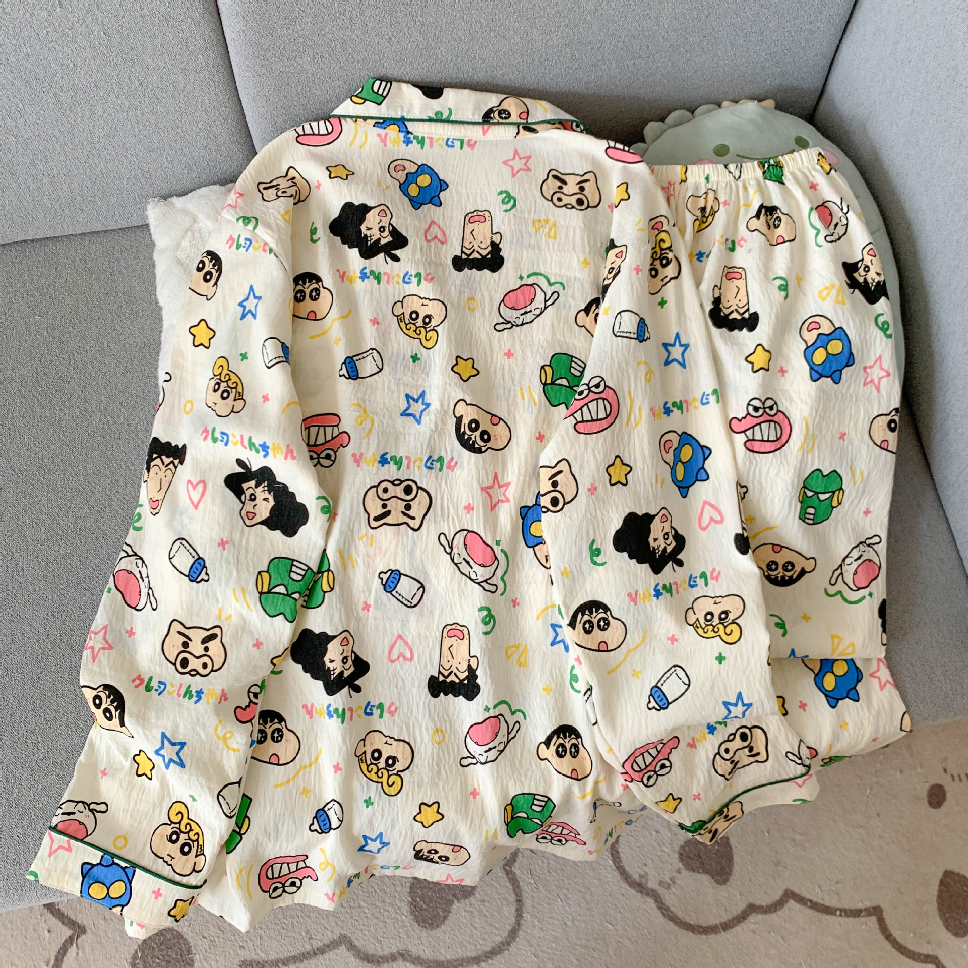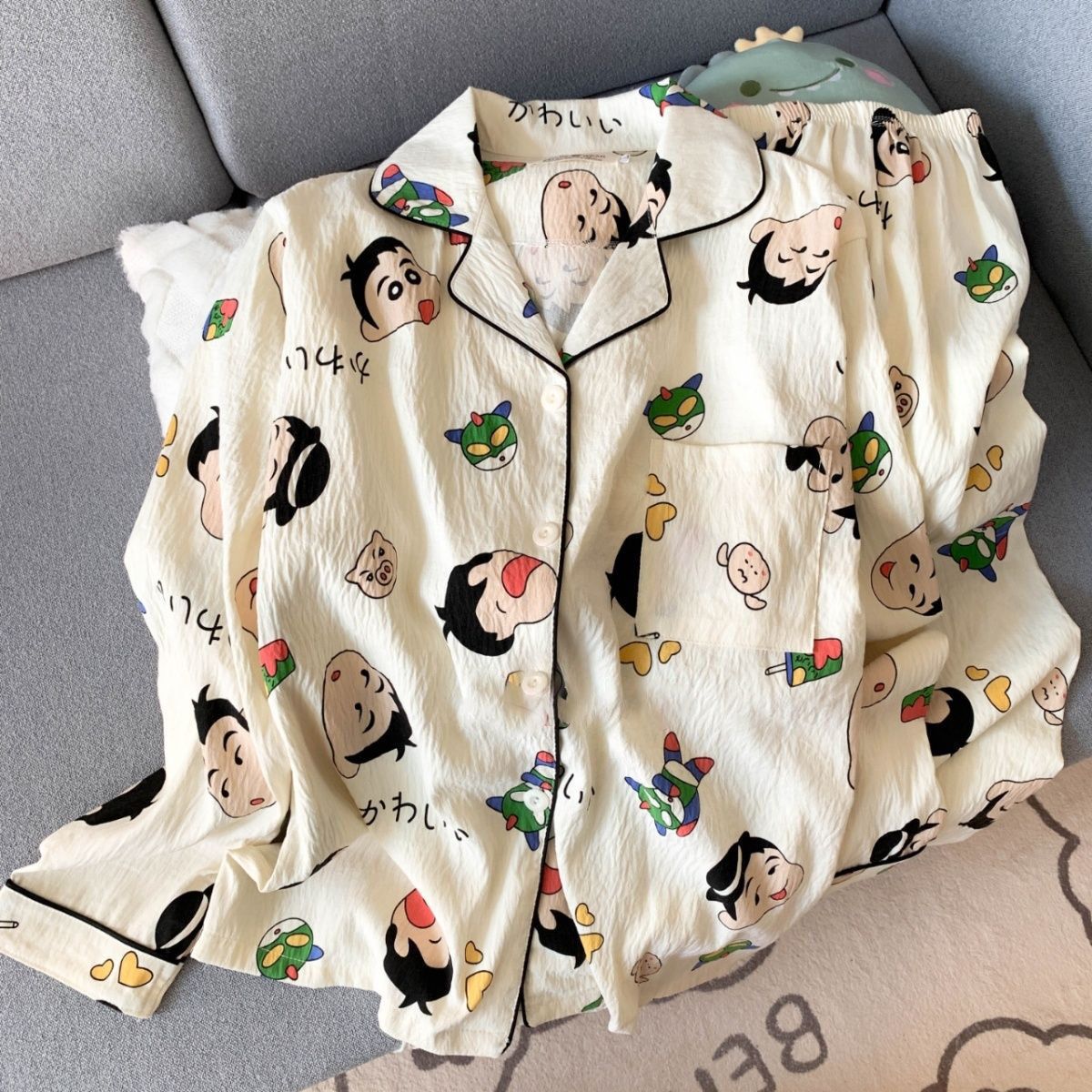 여성과 소년을위한 봄, 가을 커플 잠옷 구름면 가디건 긴팔 바지 만화 가정복 정장 생방송