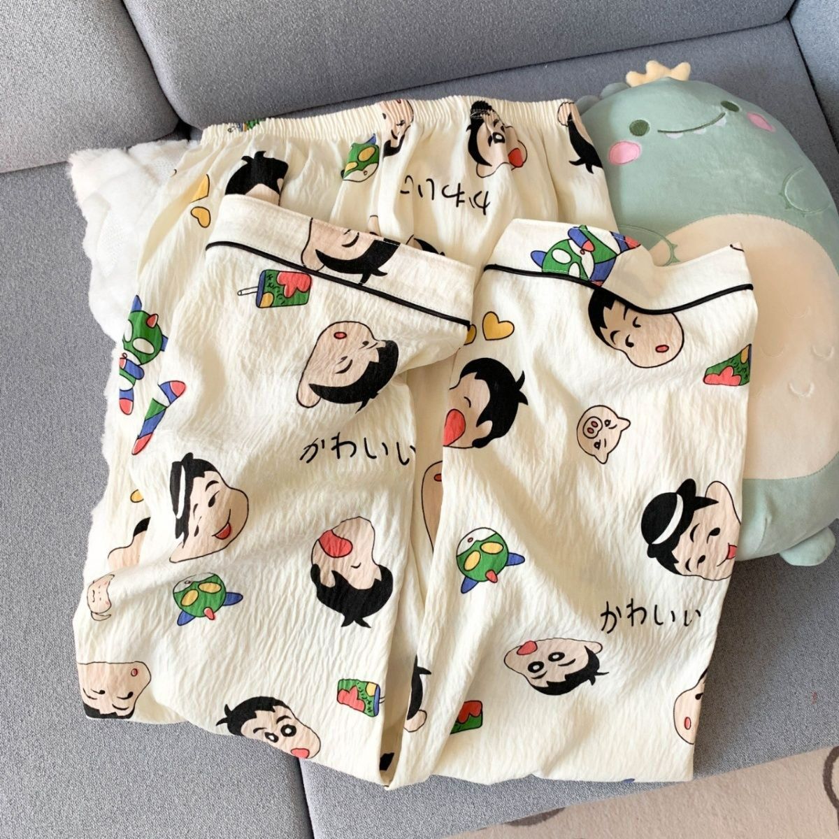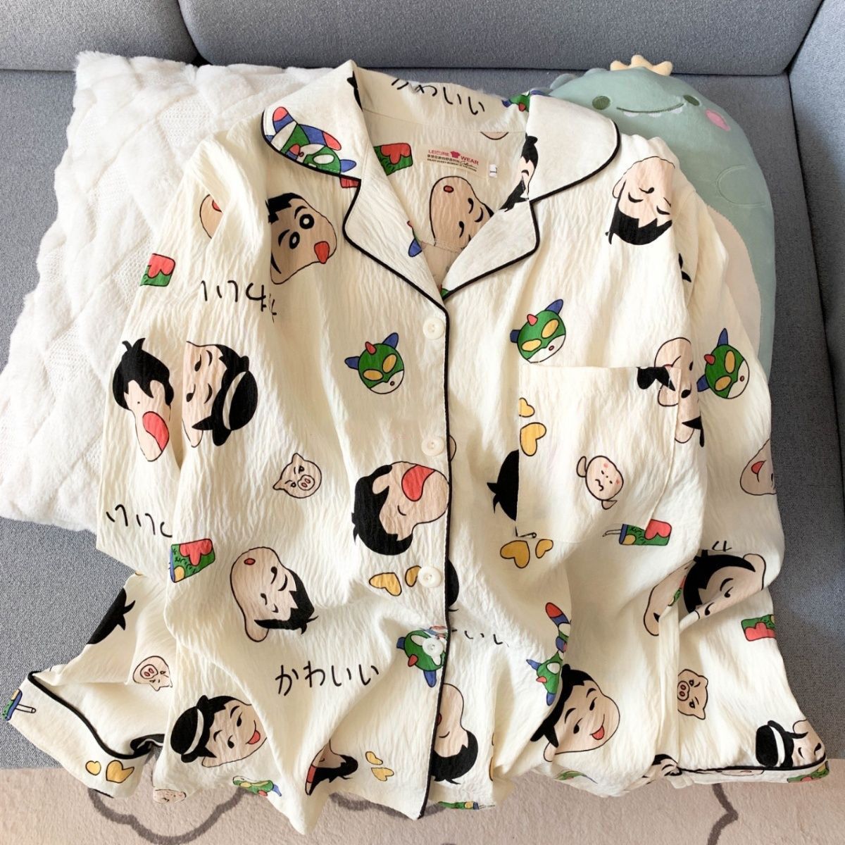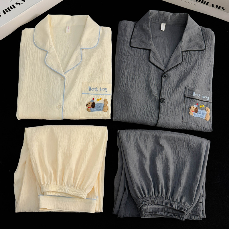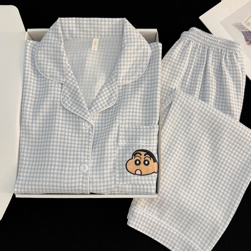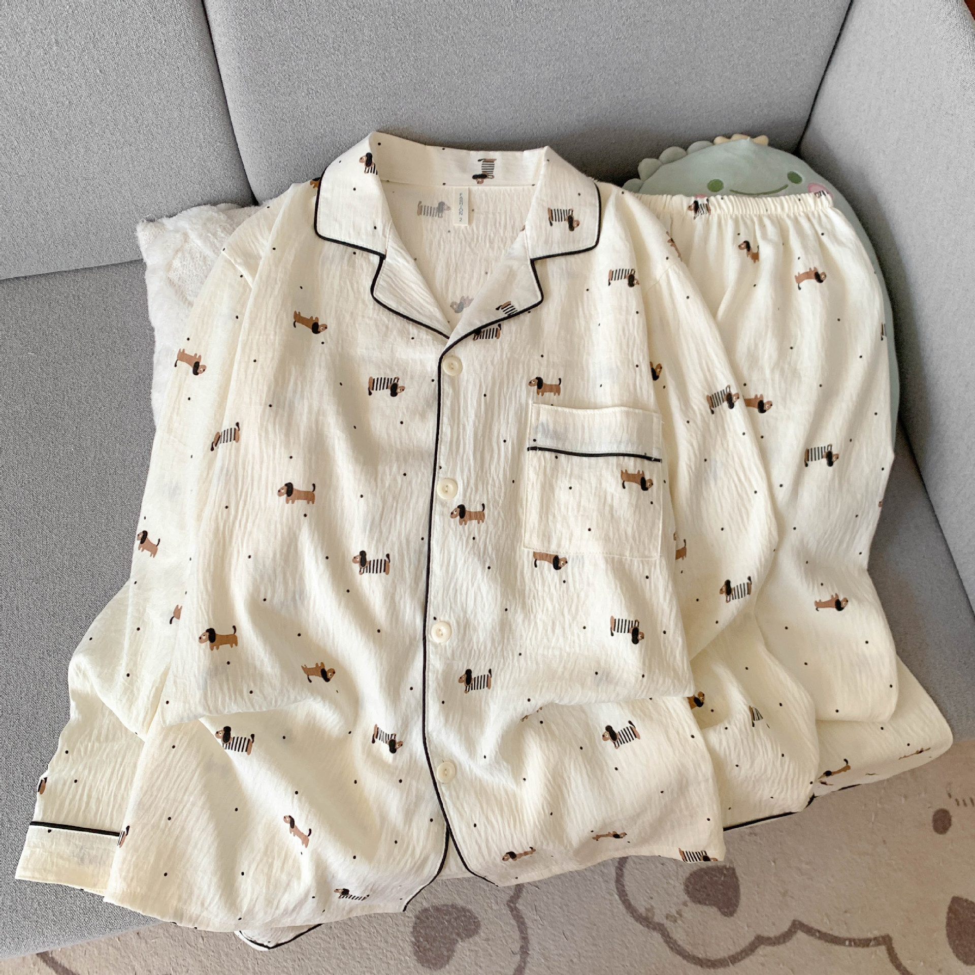 여성과 소년을위한 봄, 가을 커플 잠옷 구름면 가디건 긴팔 바지 만화 가정복 정장 생방송