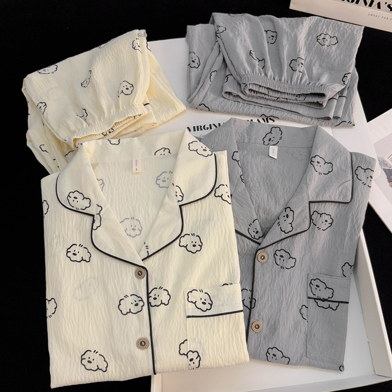 여성과 소년을위한 봄, 가을 커플 잠옷 구름면 가디건 긴팔 바지 만화 가정복 정장 생방송스토어 가기