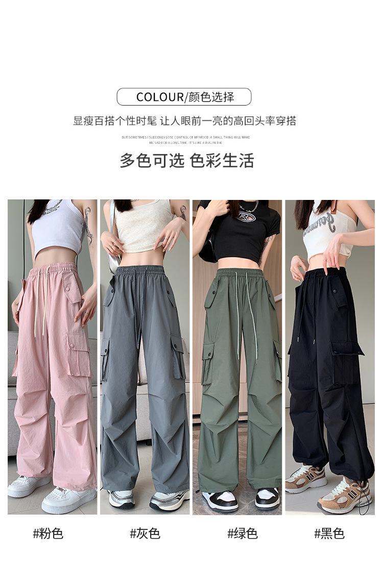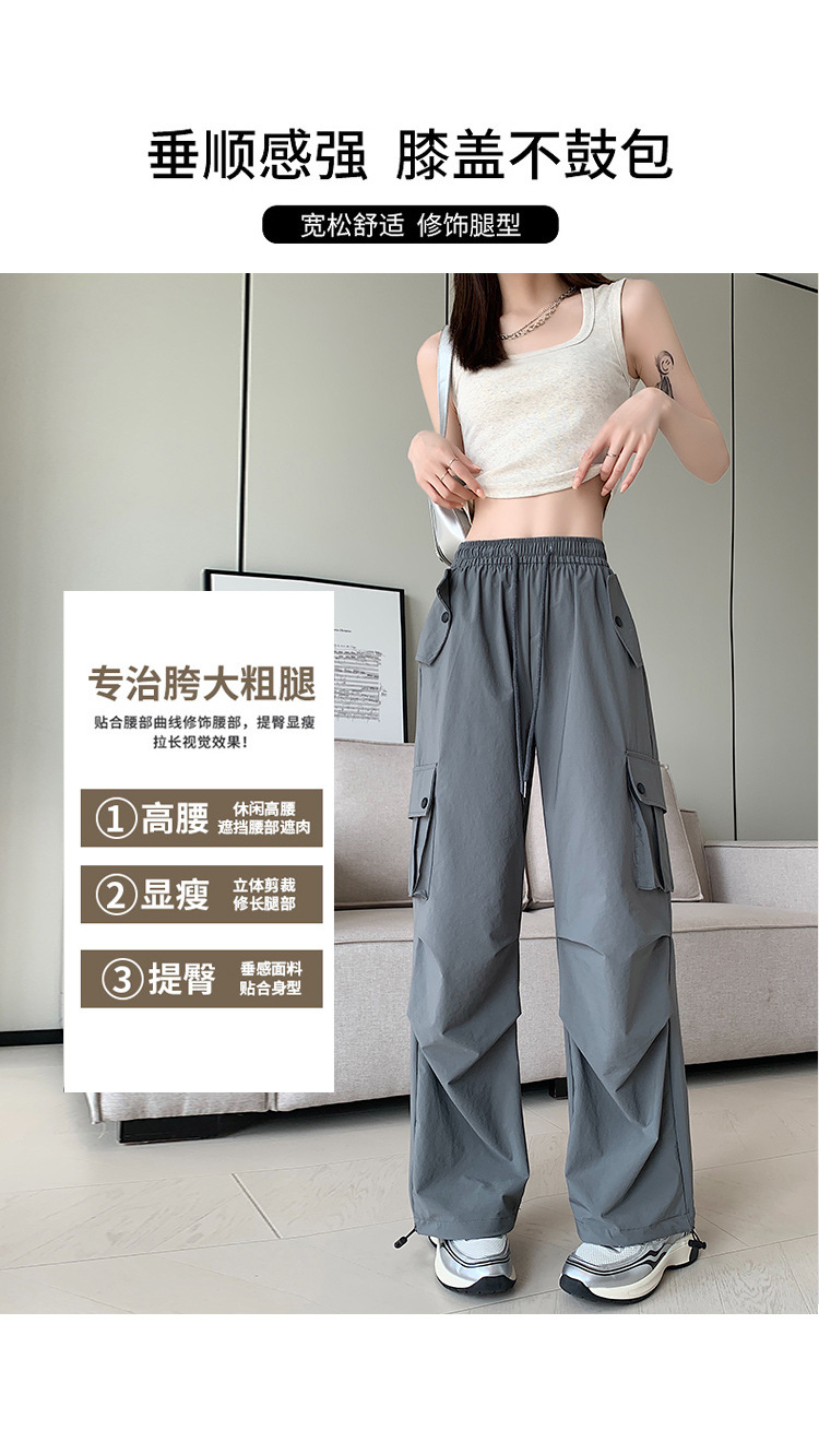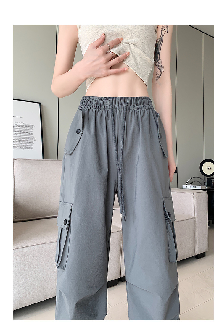 빠른 건조 작업복 여성 바지 2025 새로운 충전 작은 넓은 다리 여름 아이스 실크 얇은 등산 스포츠 바지스토어 가기