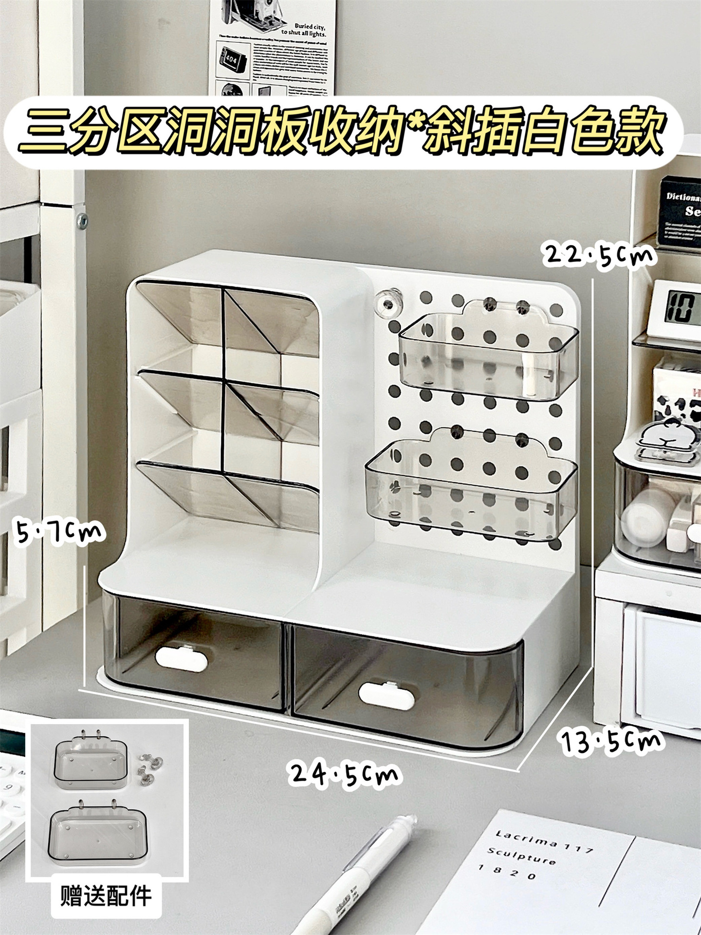 • 3칸 구멍판 수납 * 대각선 삽입 화이트 모델 [무료 부속품]