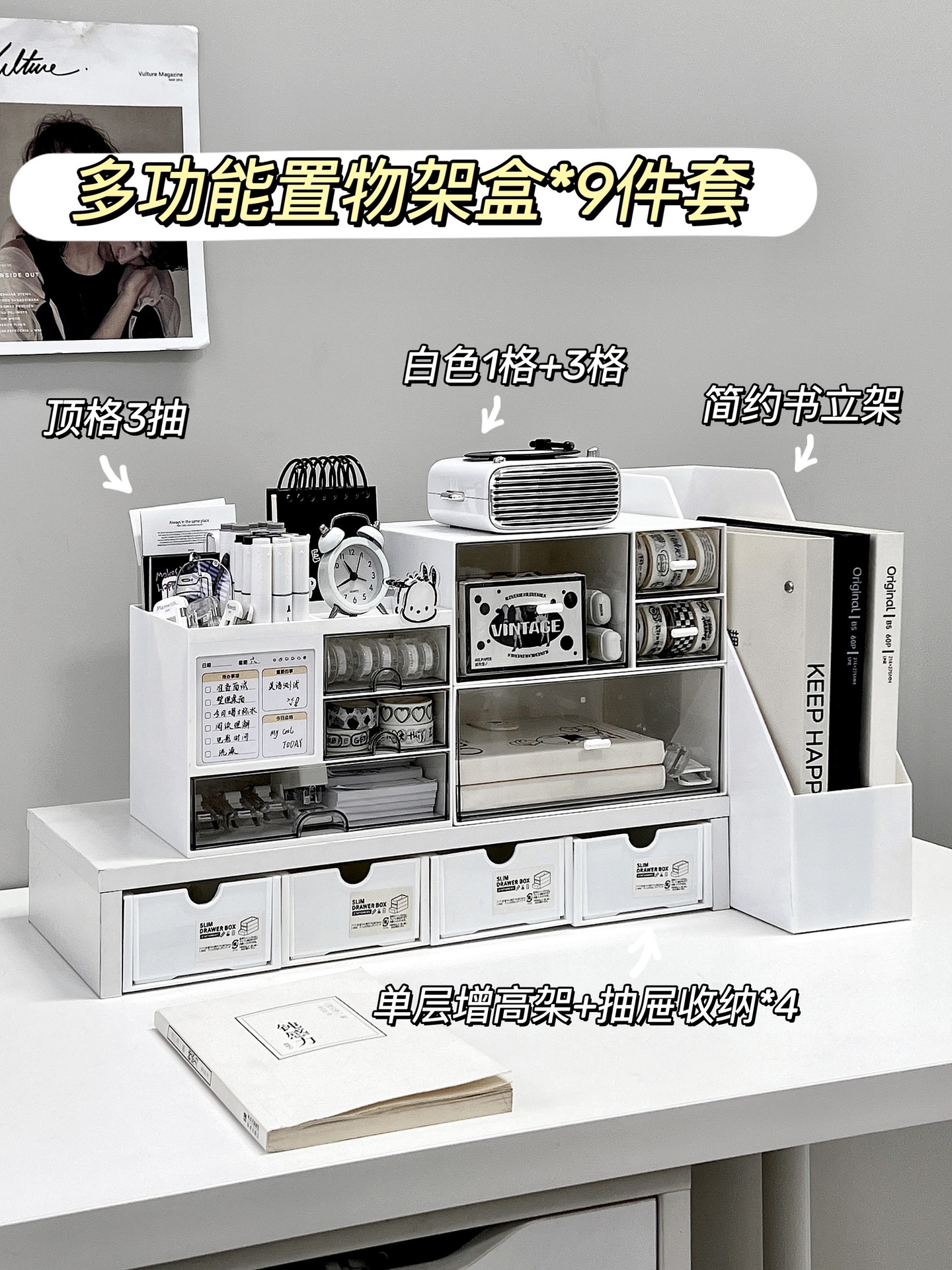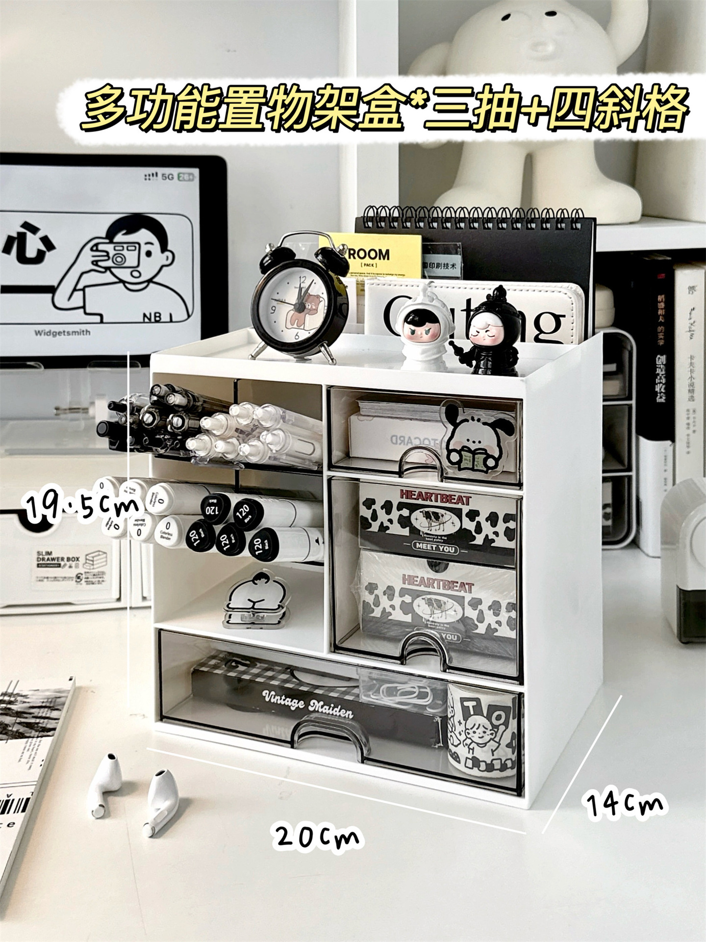 • 다기능 수납 선반 상자*서랍 3개+대각선 수납칸 4개