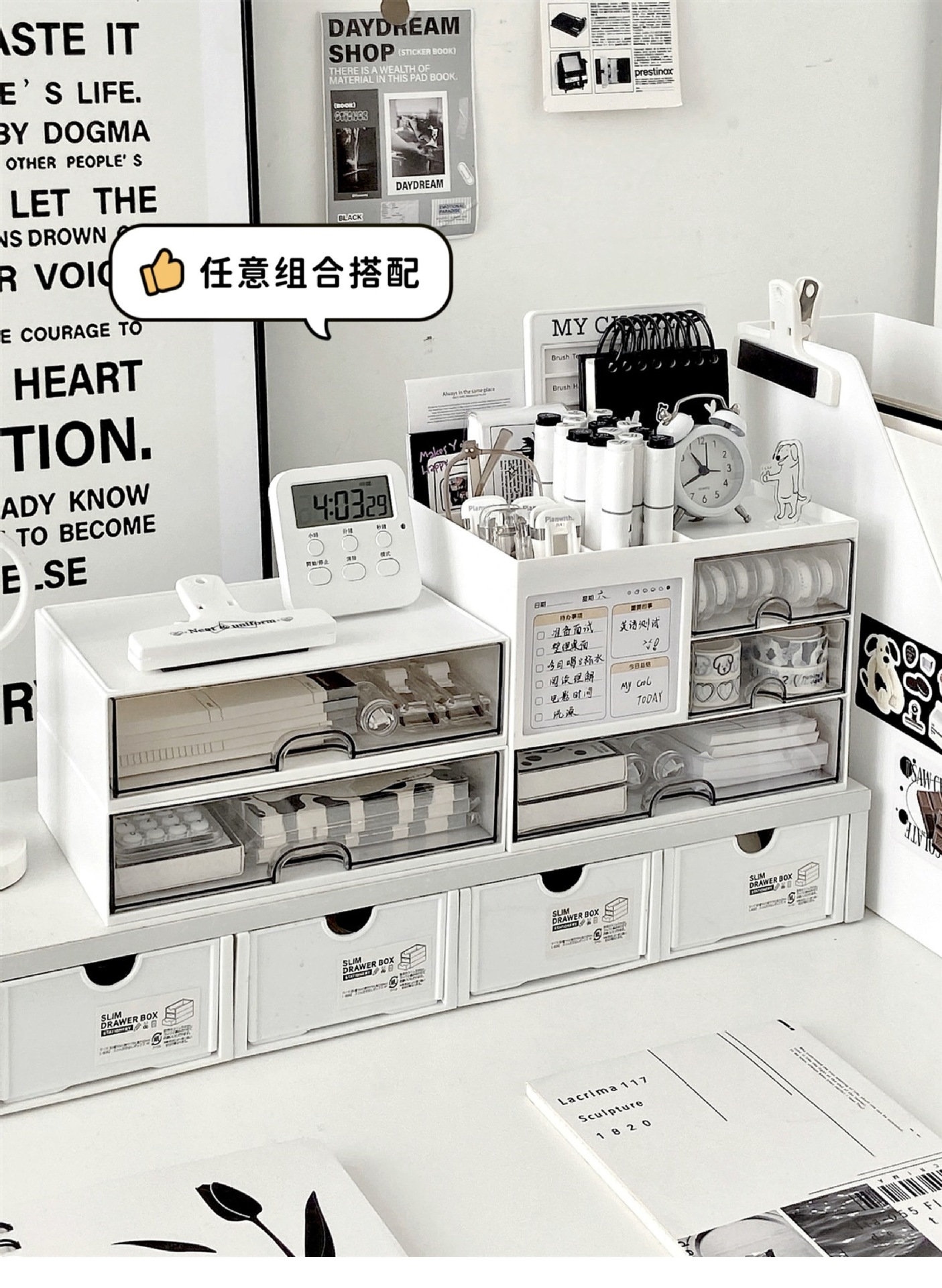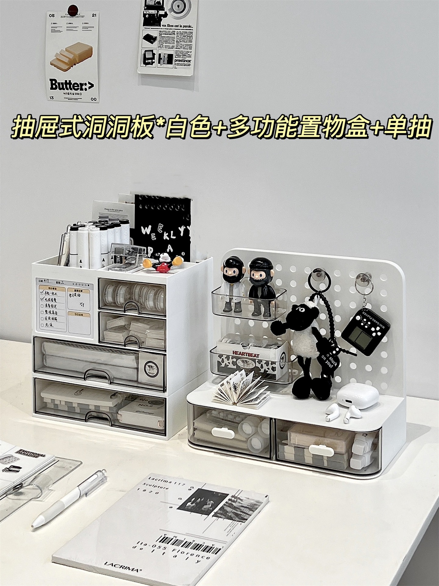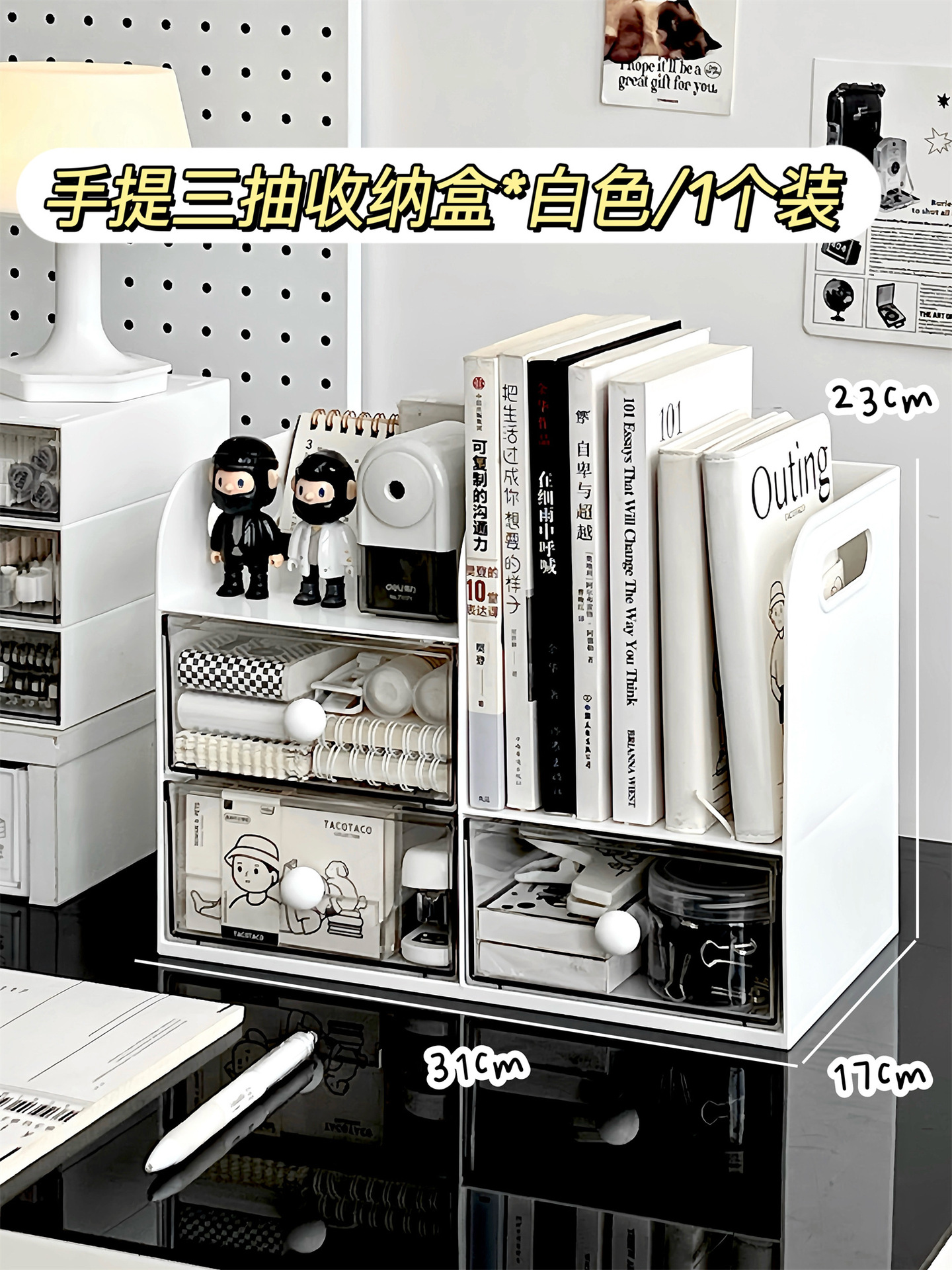 • 서랍형 홀보드*화이트+다기능 수납박스+싱글서랍
