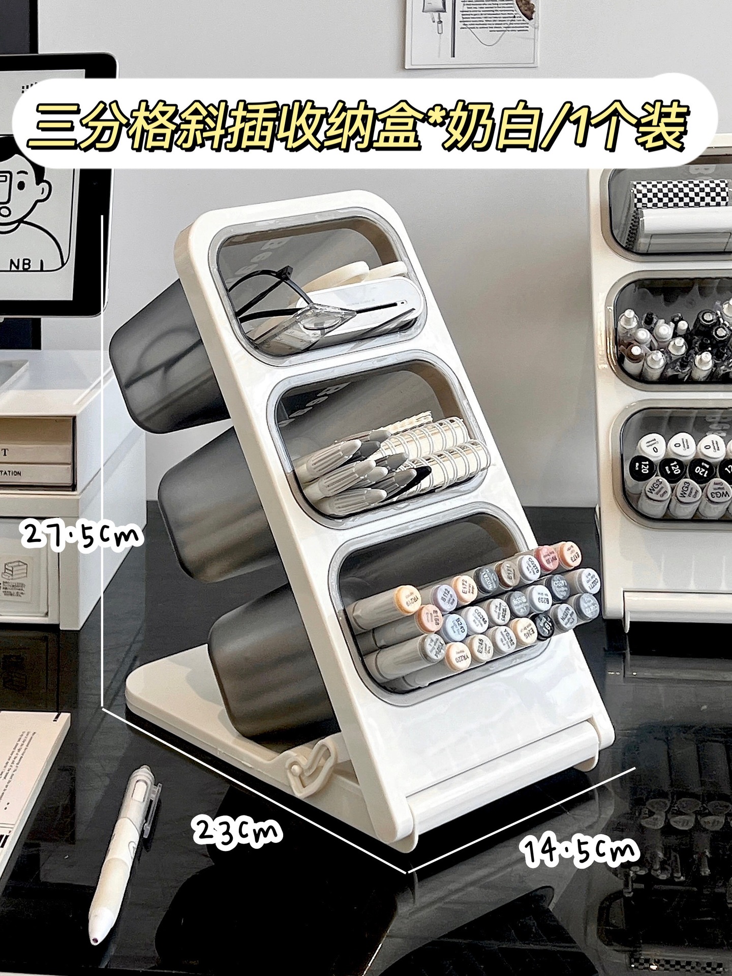 • 3칸 사선 수납함*밀크화이트/1개