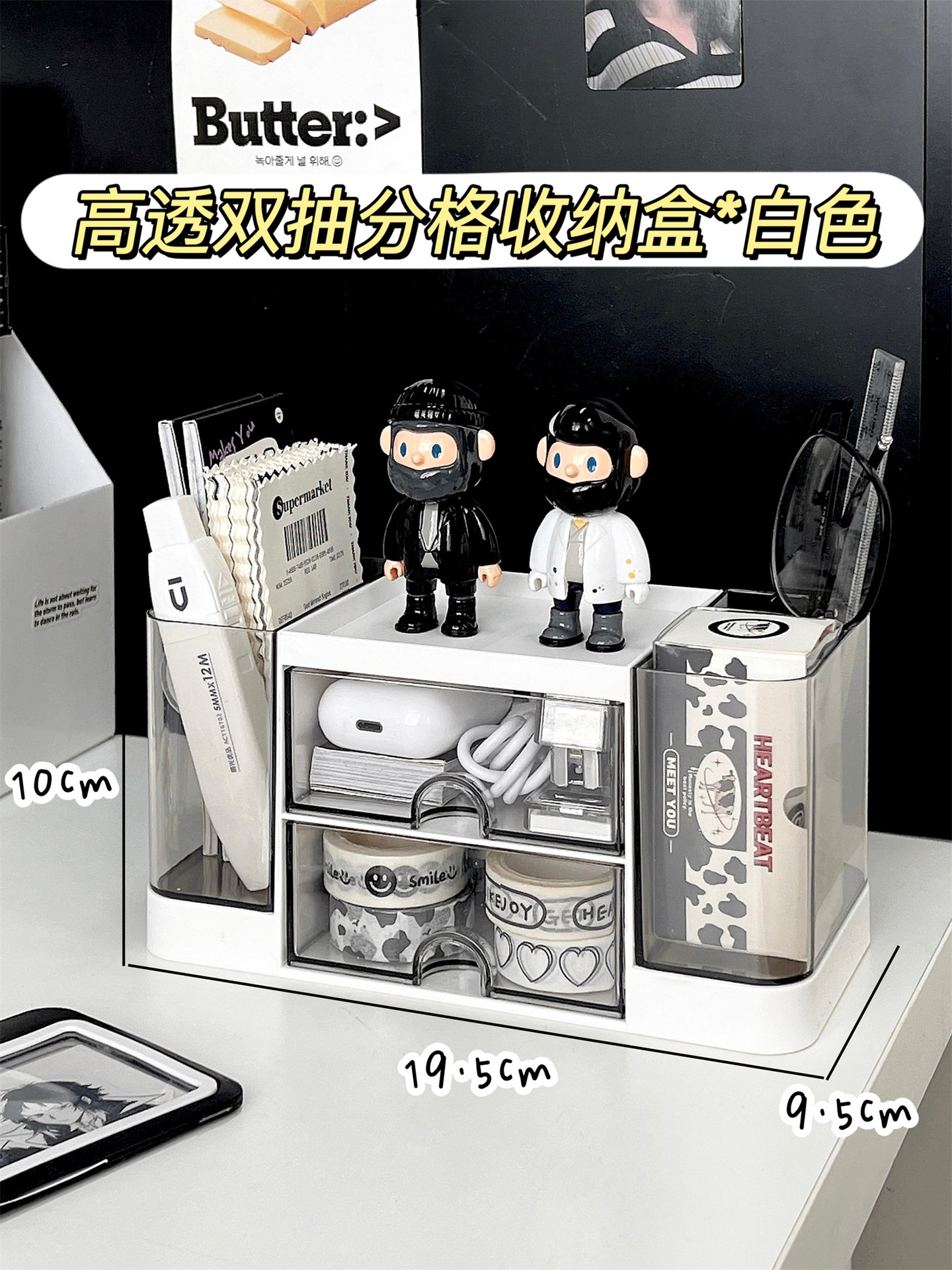 • 투명도가 높은 이중 서랍 수납함*화이트