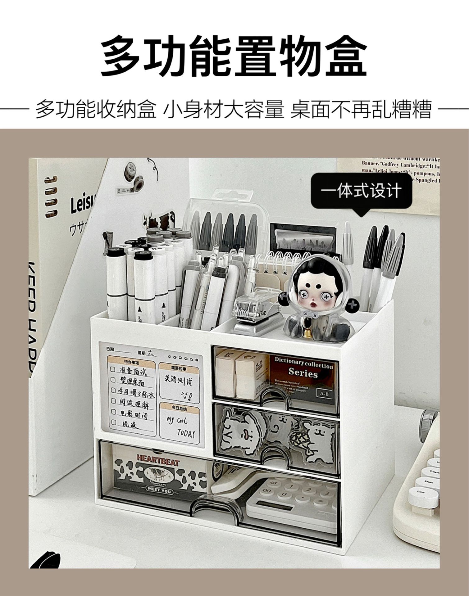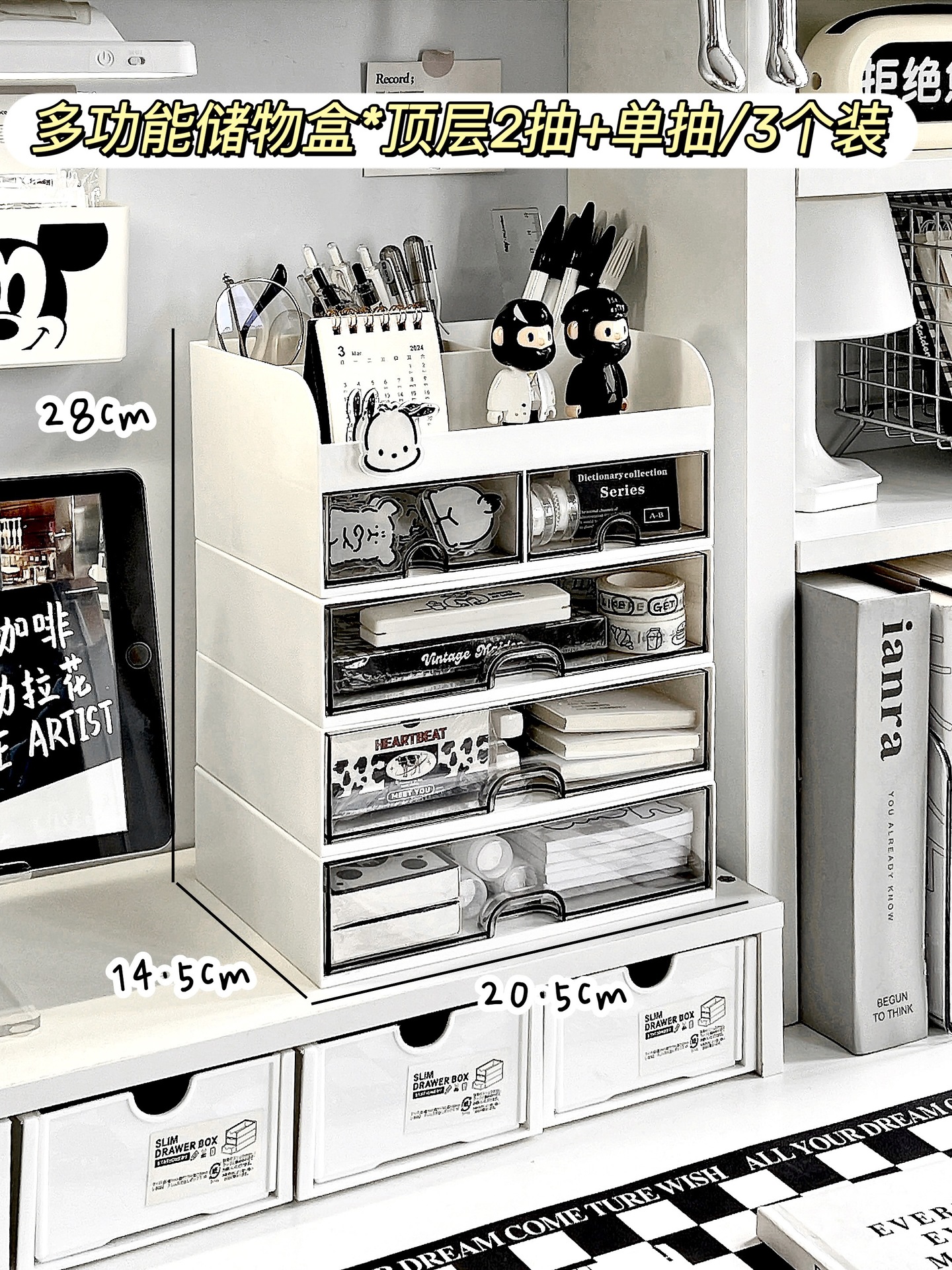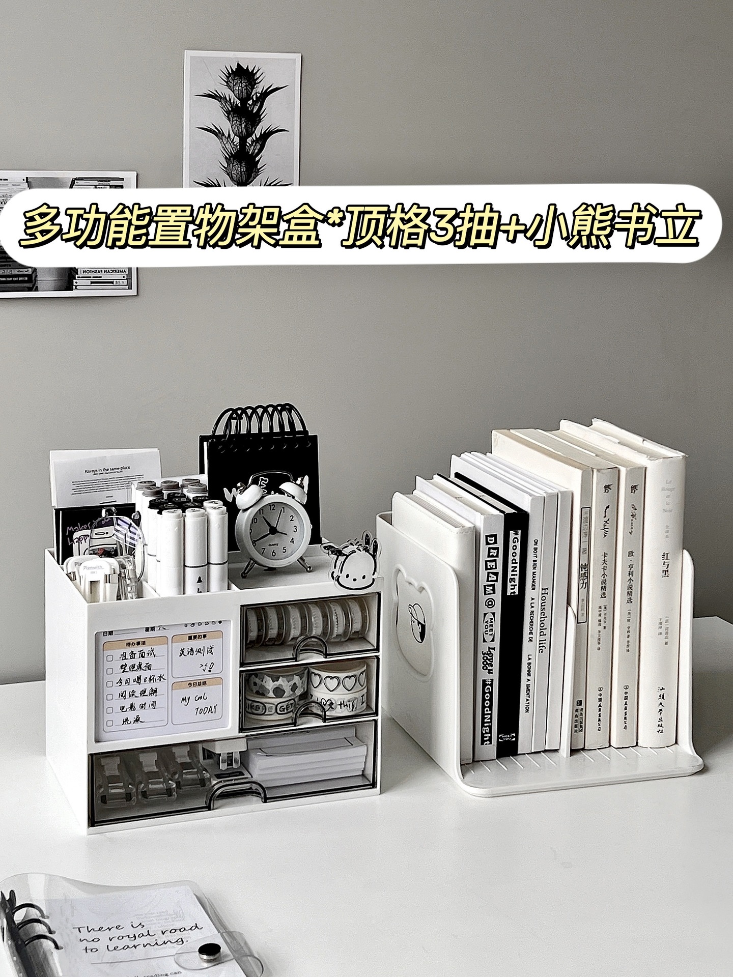 • 다기능 수납 선반 상자* 상단 수납공간 서랍 3개 + 곰 북엔드
