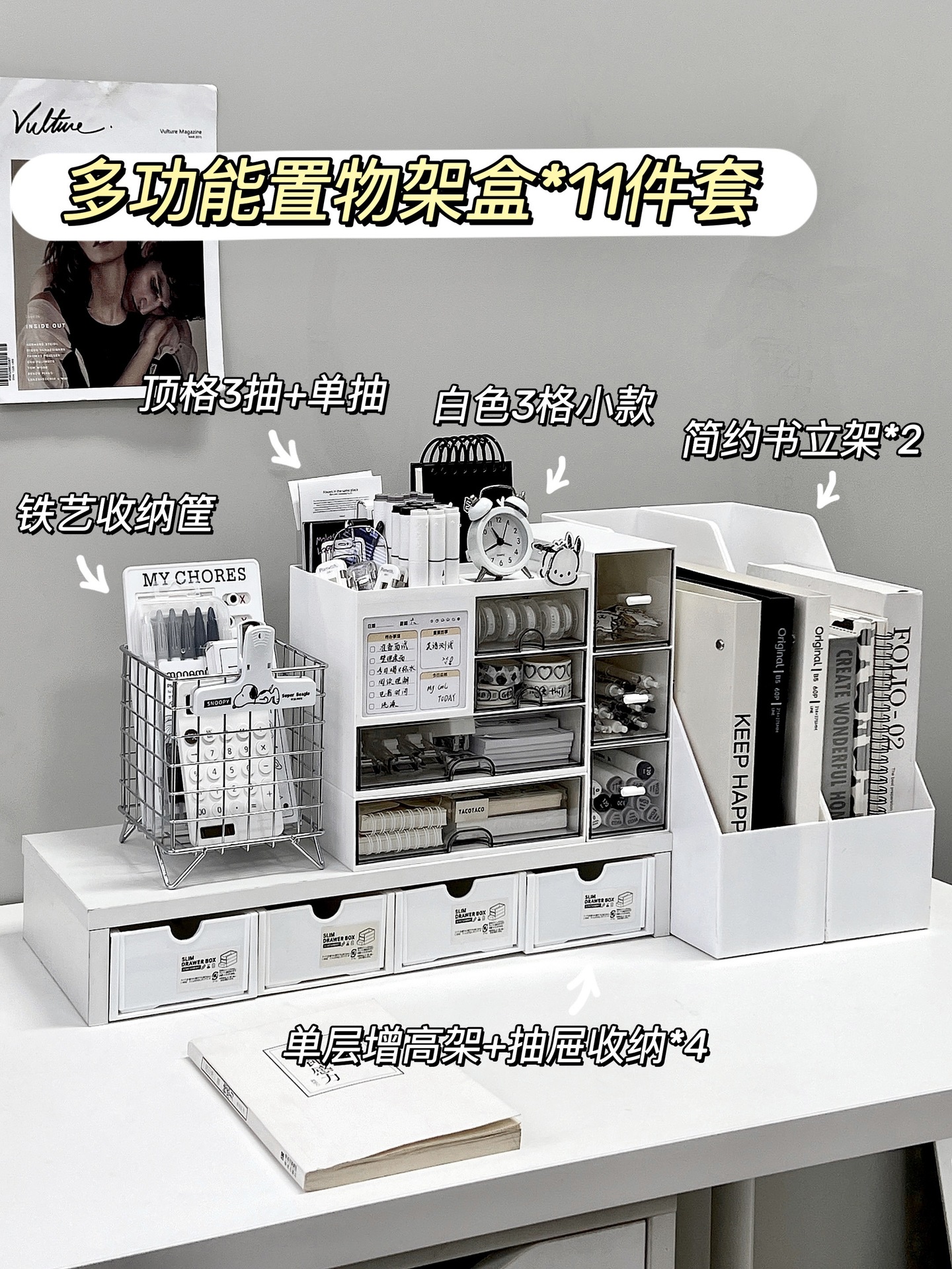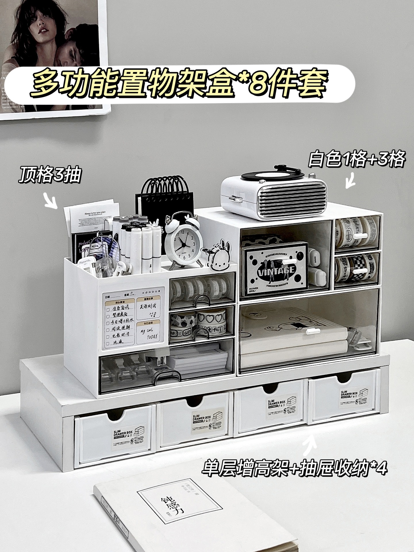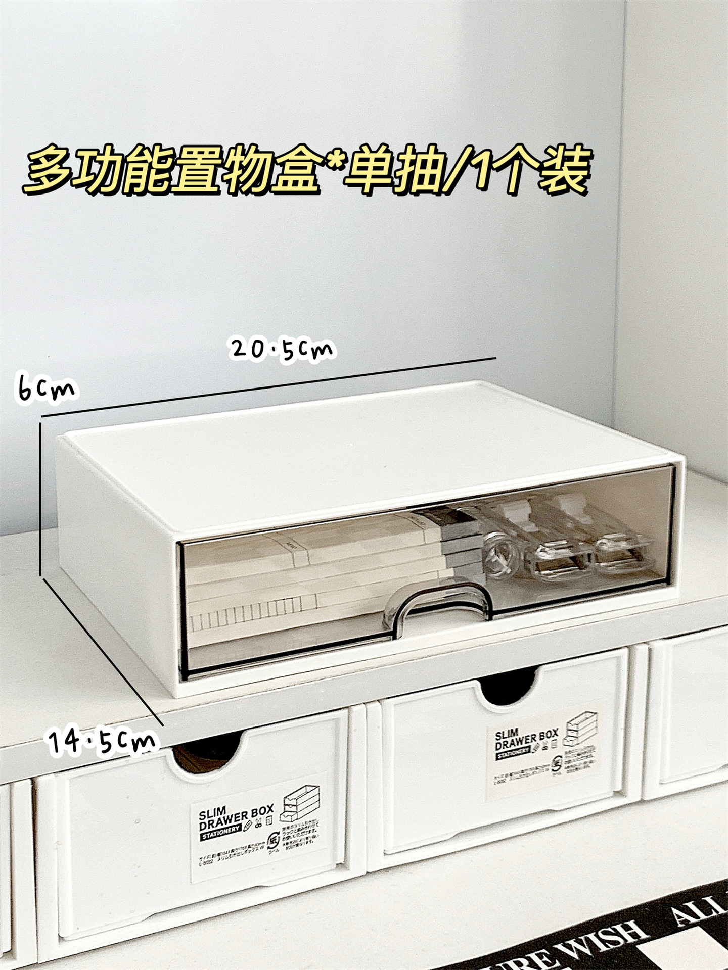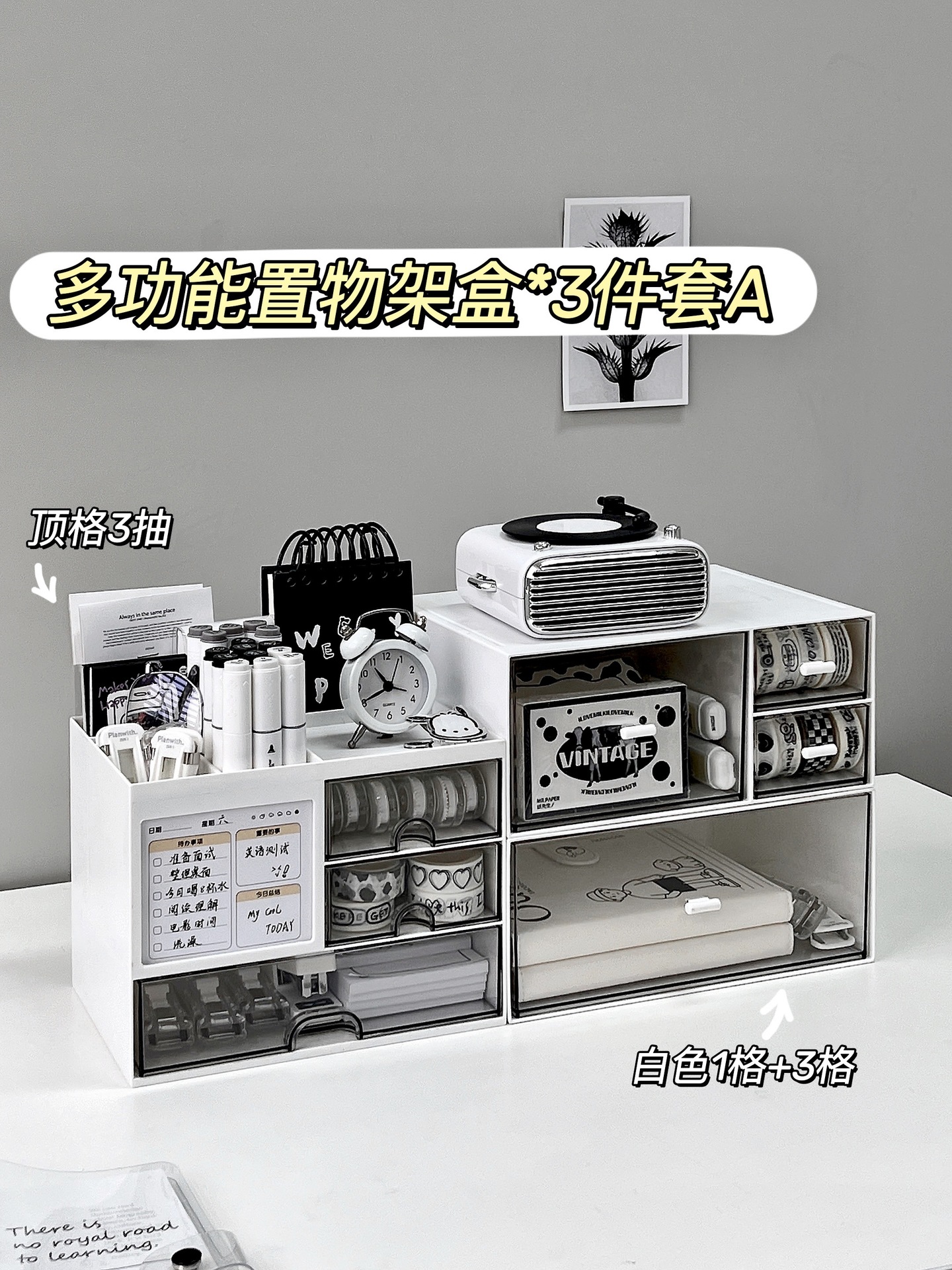 • 다기능 수납 선반 상자*서랍 3개+상단 수납공간+단층 1팩