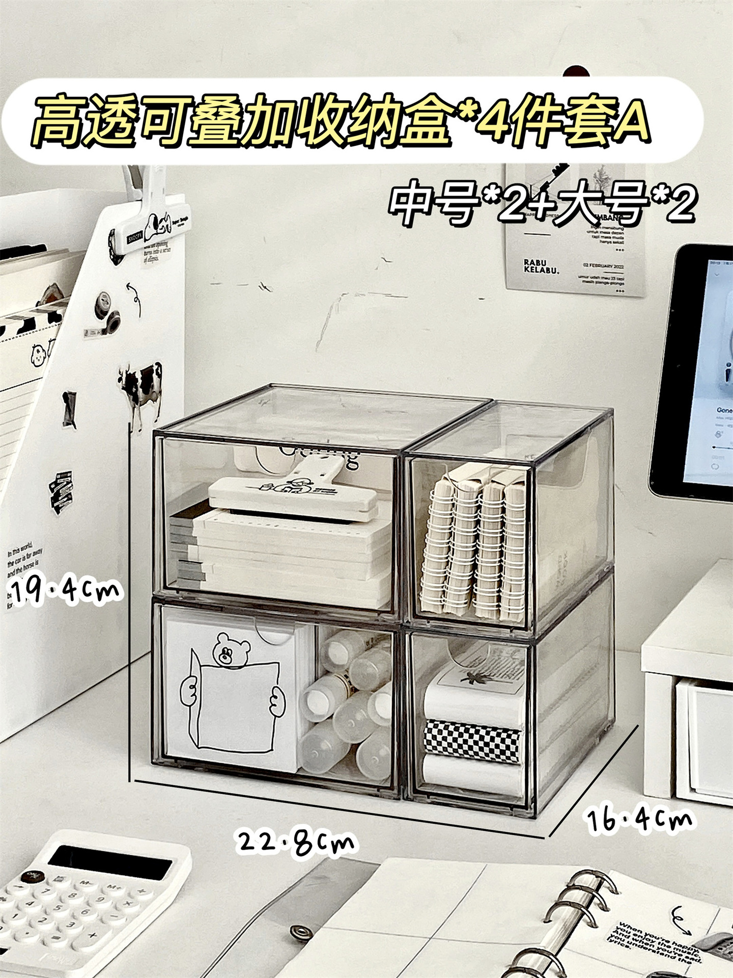 • 투명도가 높은 적층형 수납함*4개 세트 A