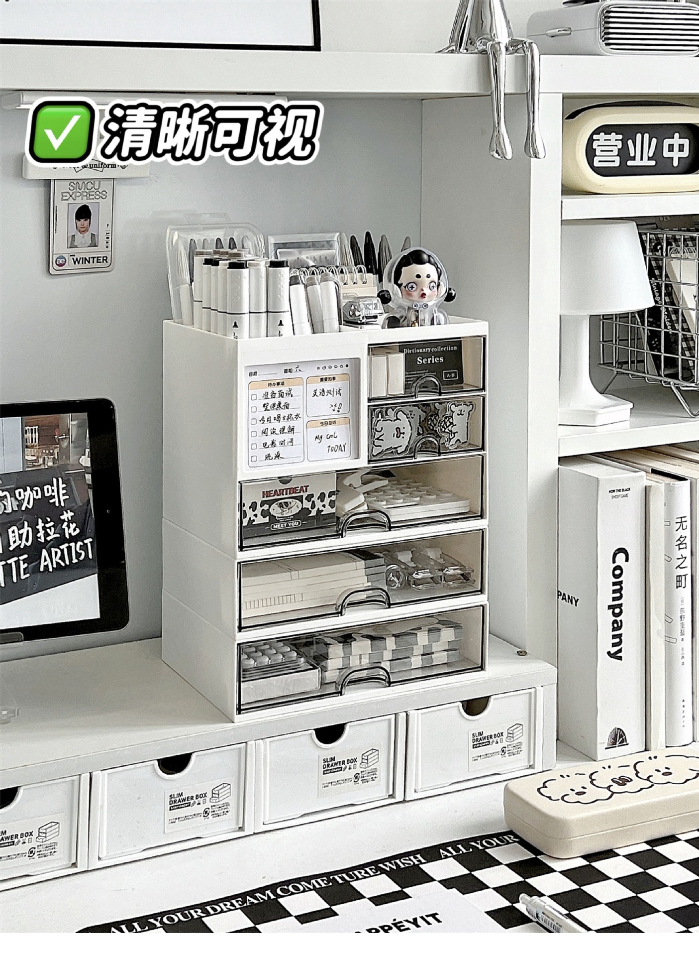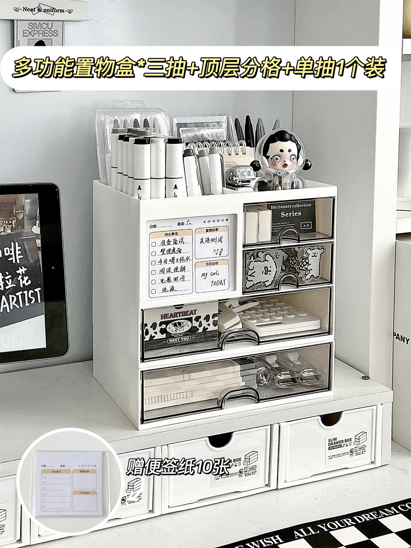 데스크탑 스토리지 박스 서랍 유형 학생 펜 홀더 사무실 스테이션 스토리지 랙 아크릴 데스크 문구 주최자 상자스토어 가기