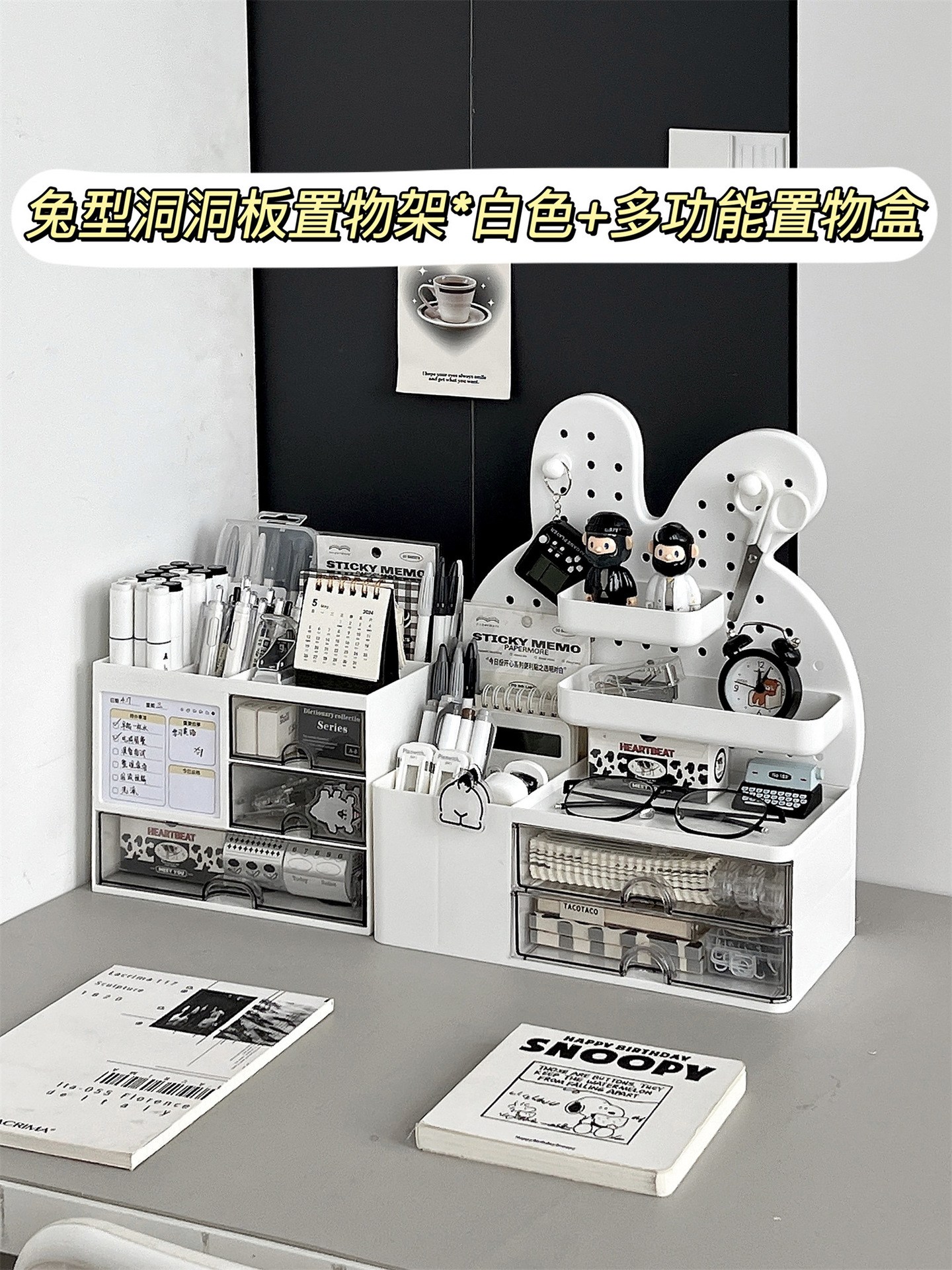 • 토끼 모양의 홀 보드 수납 선반*화이트+다기능 수납 상자