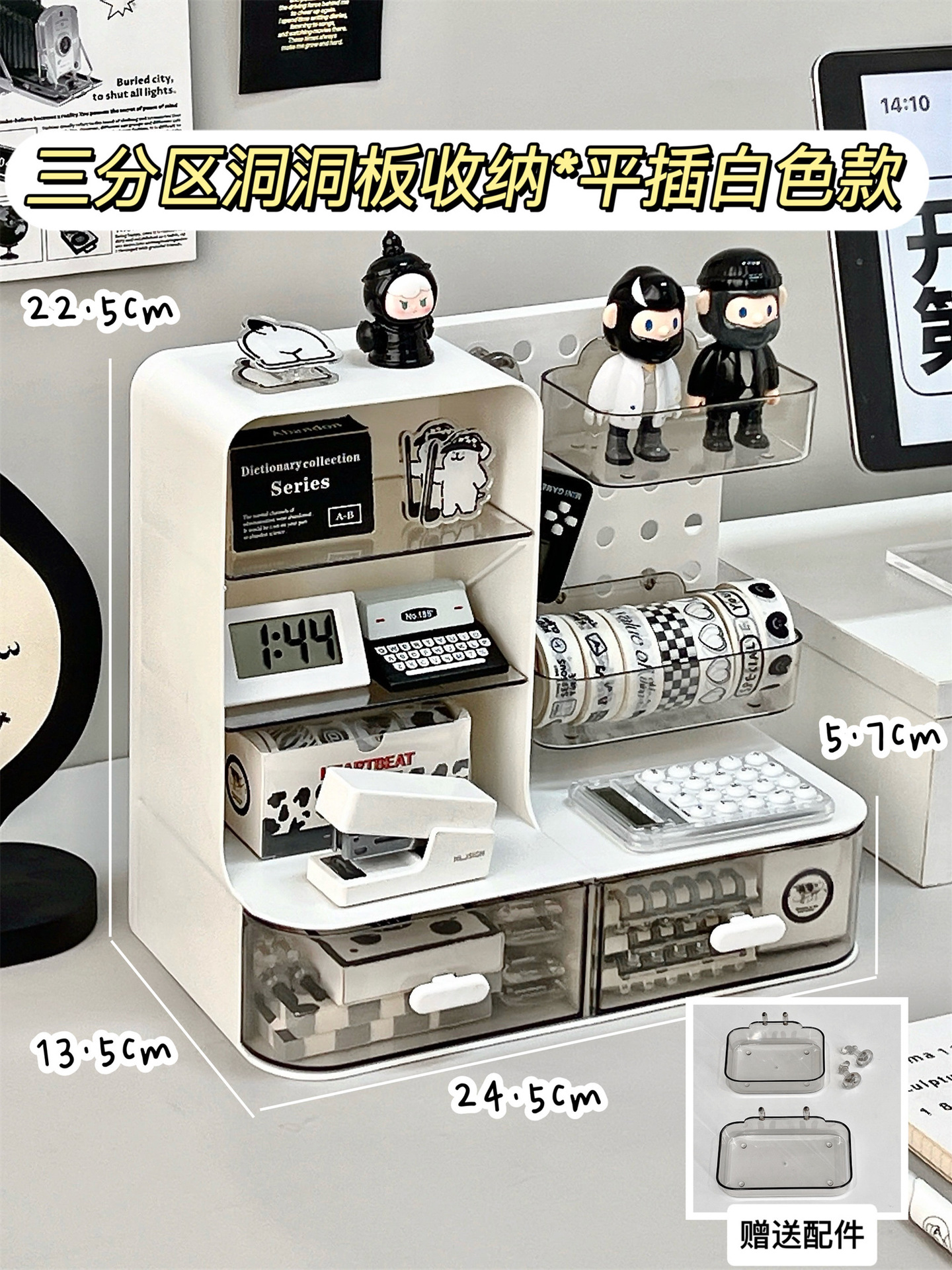 • 3칸 구멍판 수납 * 평면 삽입형 화이트 모델 [무료 부속품]