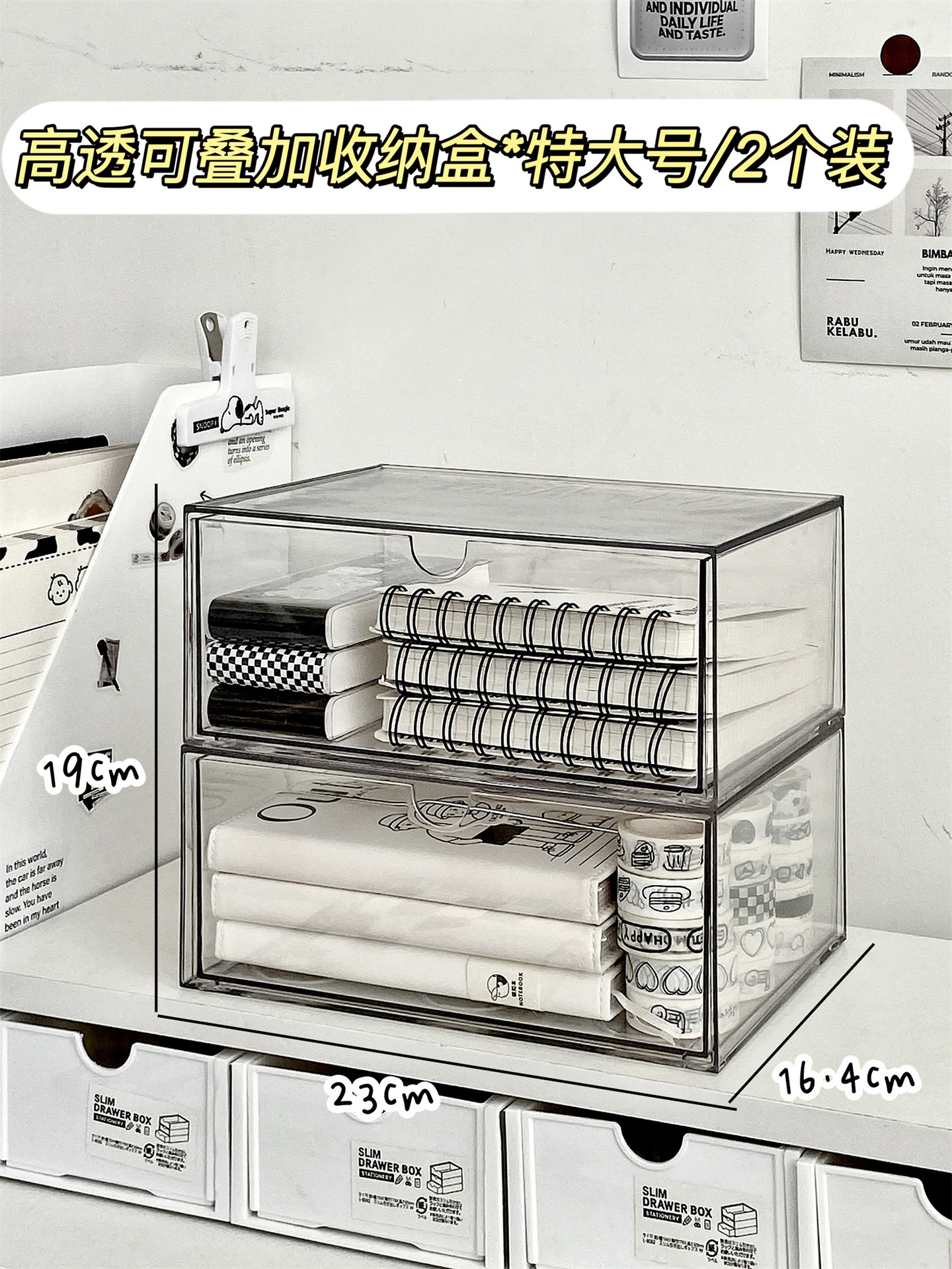 • 투명도가 높은 쌓을 수 있는 수납함*대형/2개