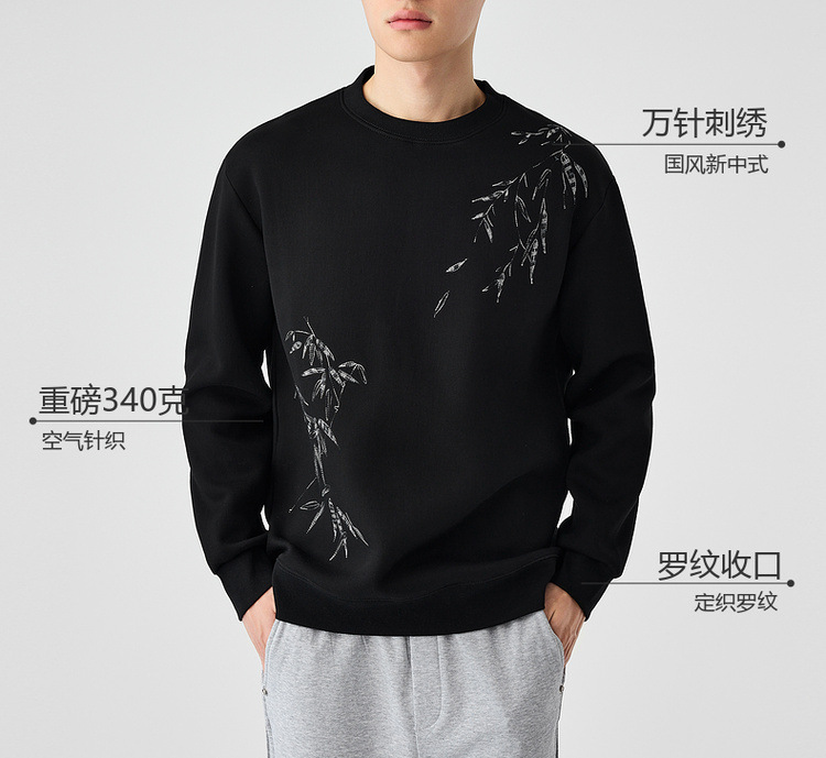 【69위안】모마이커 남성복 340g 에어 레이어 라운드넥 스웨트셔츠 남성용 신중국풍 남성 스웨트셔츠 55753