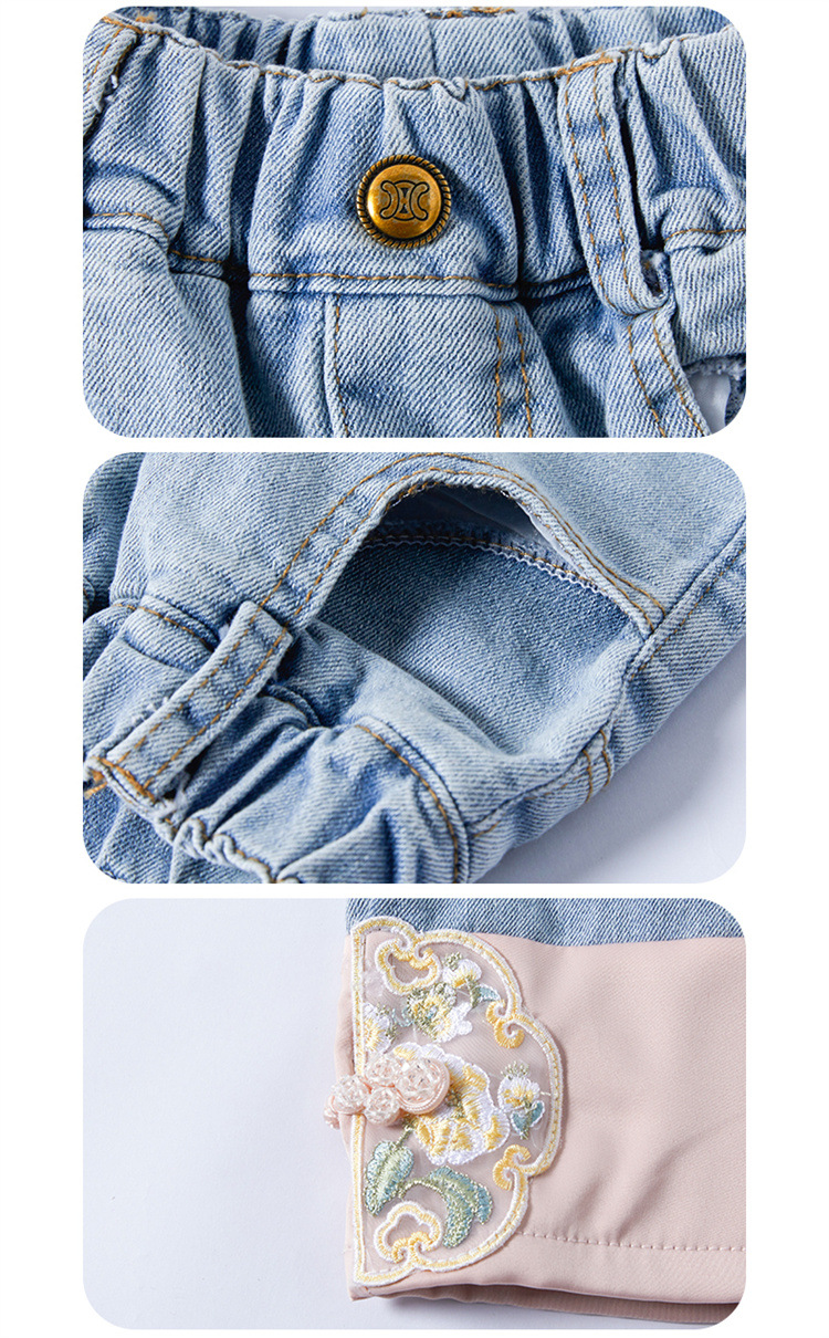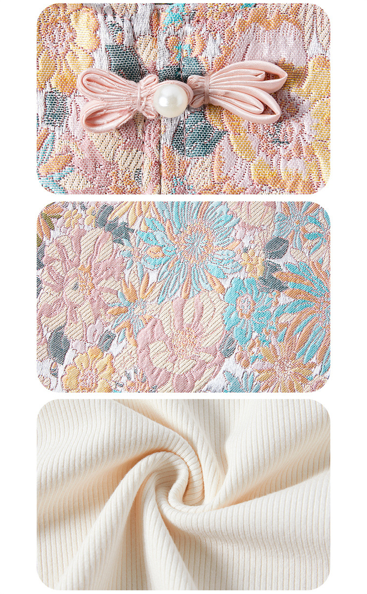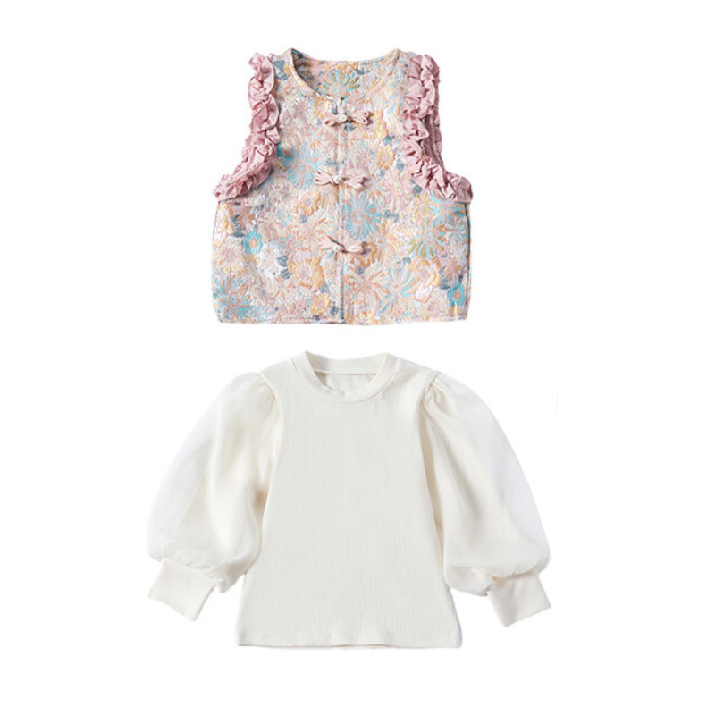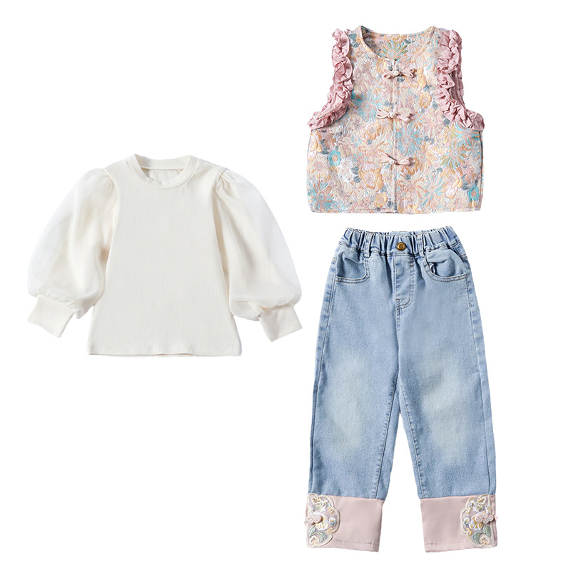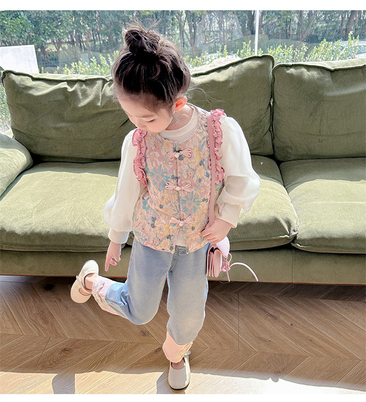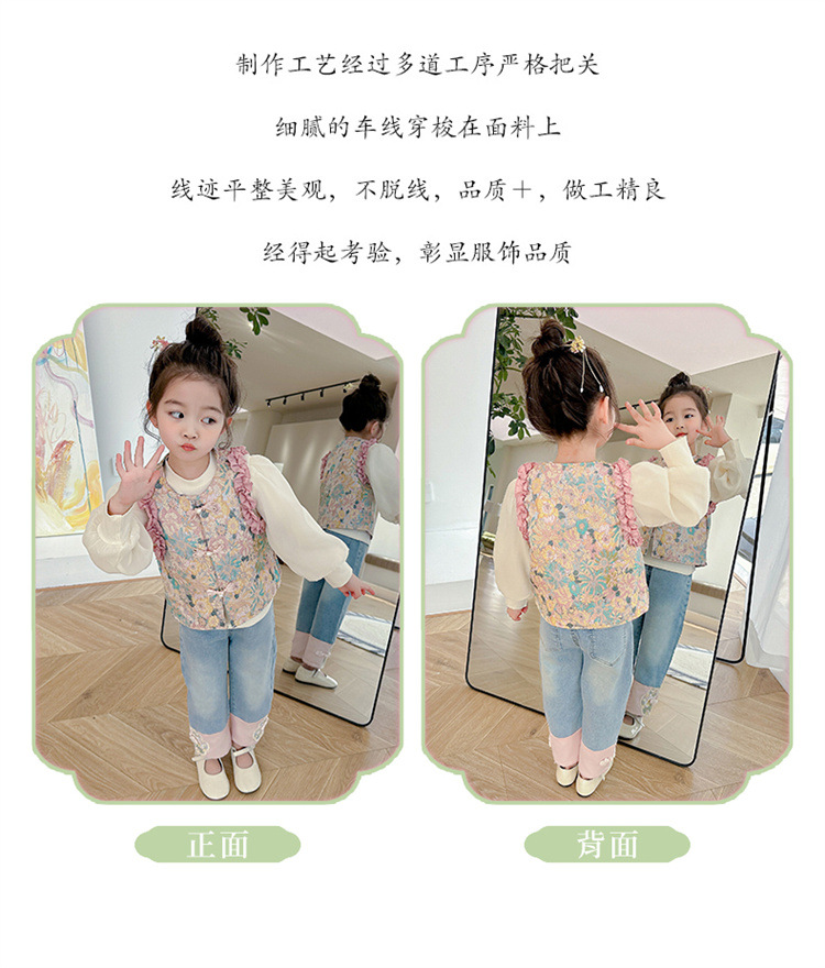 아동복 2025 봄, 가을 중국 스타일 서양식 아기 소녀 복고풍 스타일 소녀 조끼 3 피스 세트 Douyin 핫 스타일