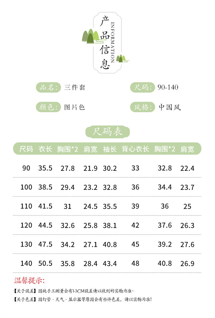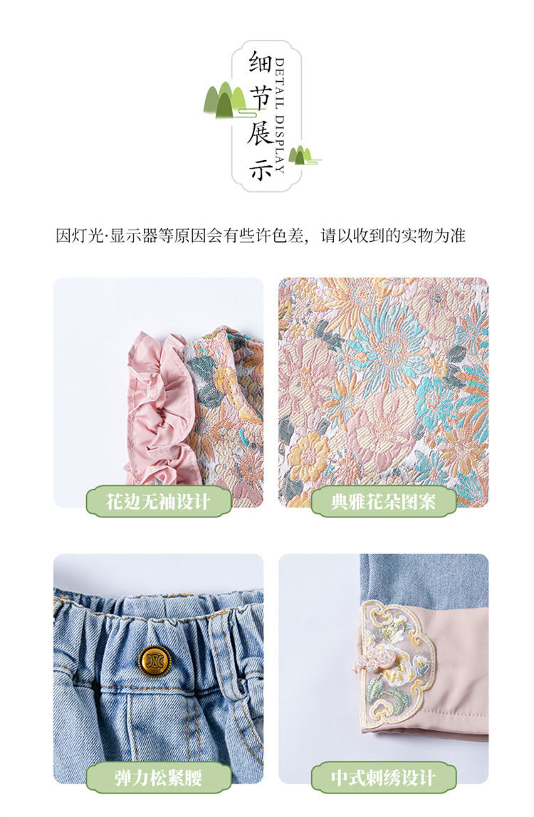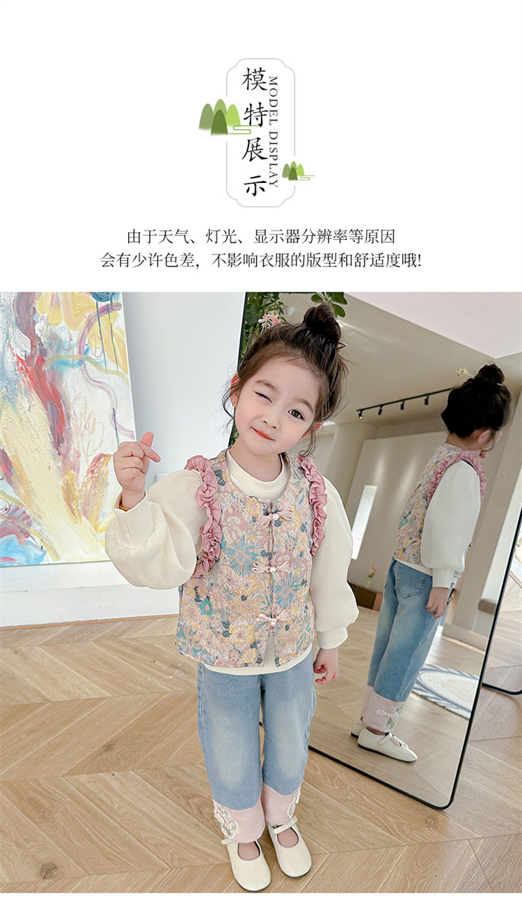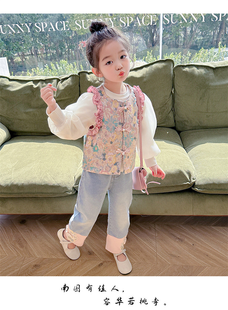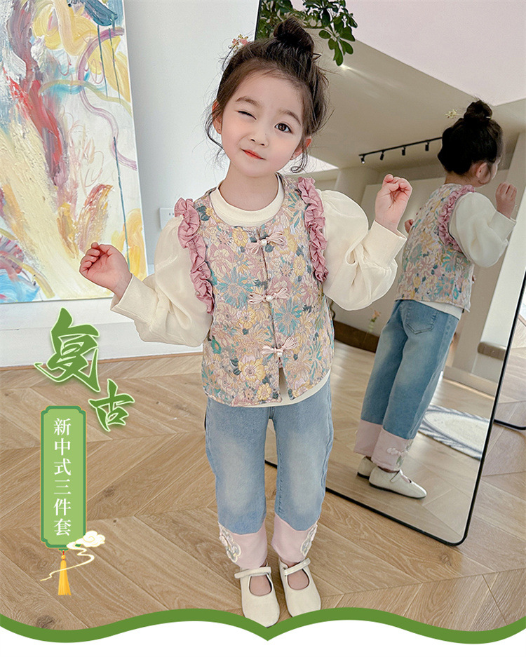 아동복 2025 봄, 가을 중국 스타일 서양식 아기 소녀 복고풍 스타일 소녀 조끼 3 피스 세트 Douyin 핫 스타일스토어 가기