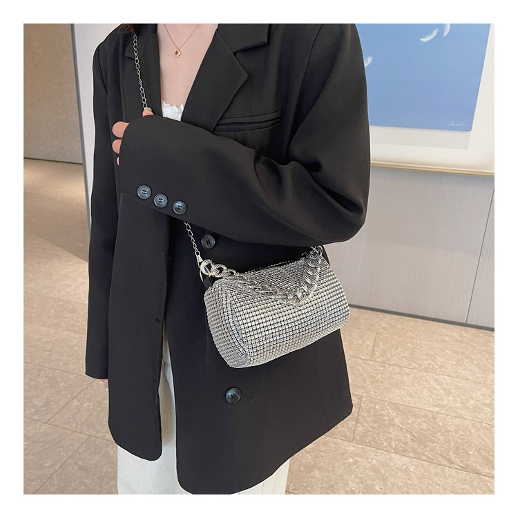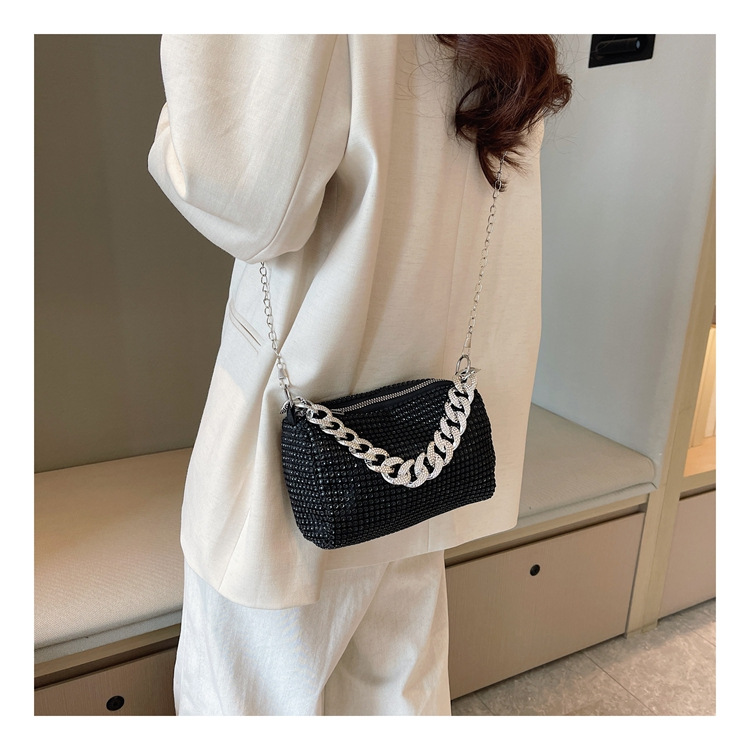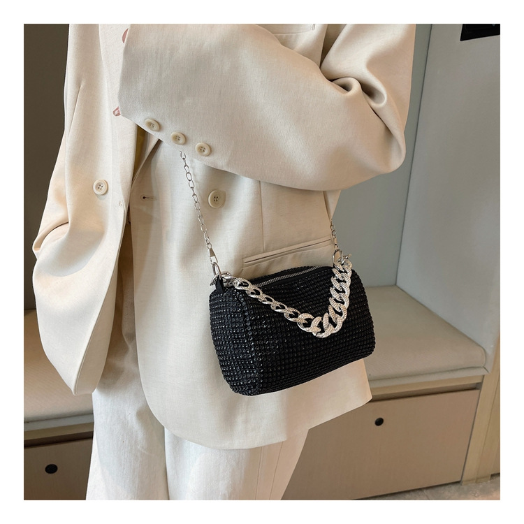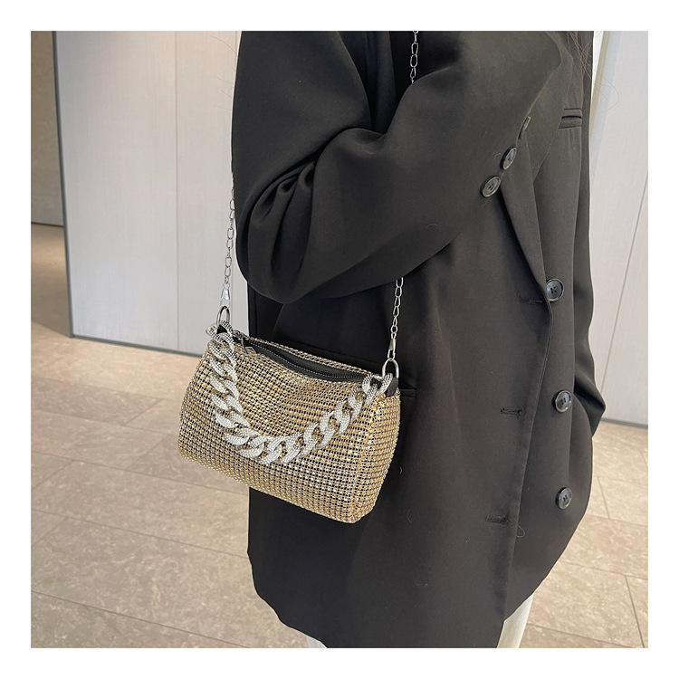 여성을위한 다이아몬드가 박힌 작은 사각형 가방 2025 새로운 유행 서양식 패션 겨드랑이 가방 간단한 체인 휴대용 크로스 바디 백스토어 가기