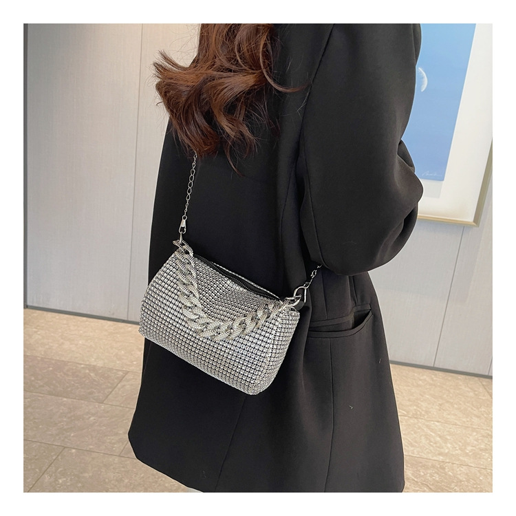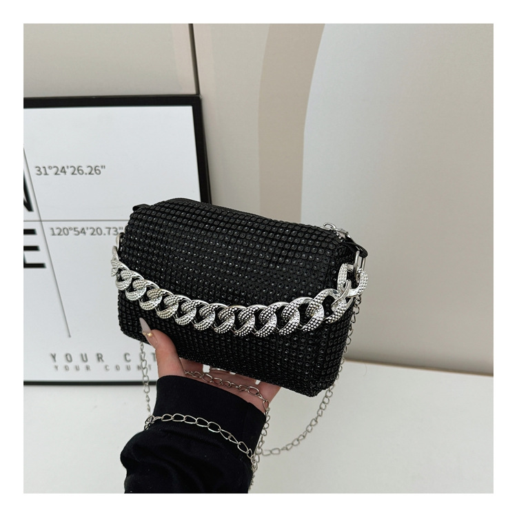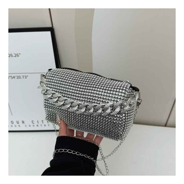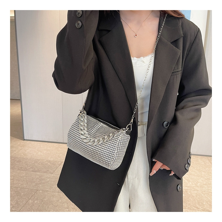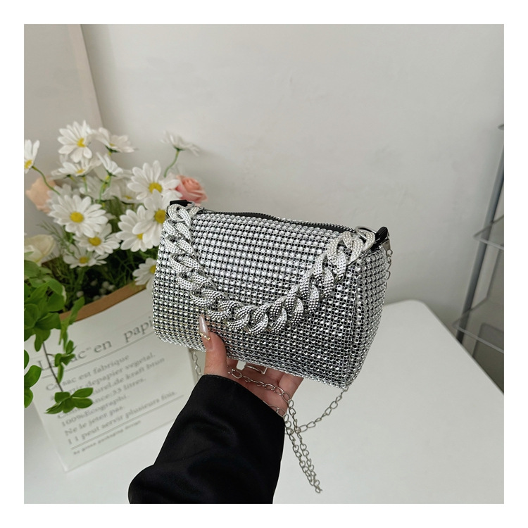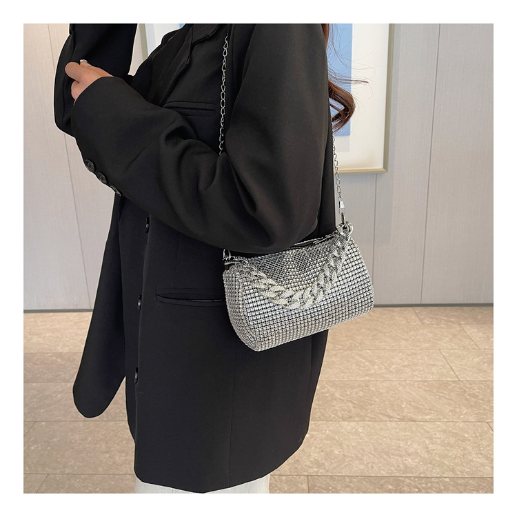 여성을위한 다이아몬드가 박힌 작은 사각형 가방 2025 새로운 유행 서양식 패션 겨드랑이 가방 간단한 체인 휴대용 크로스 바디 백