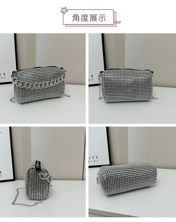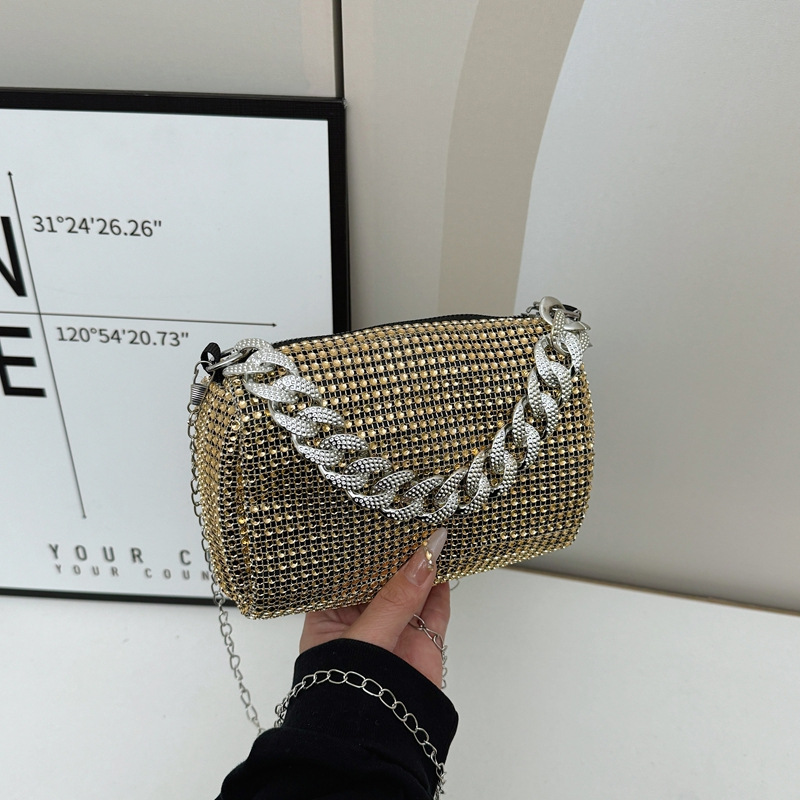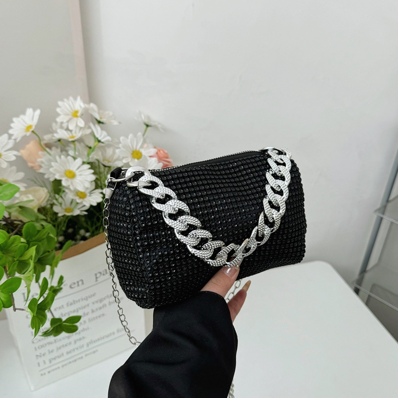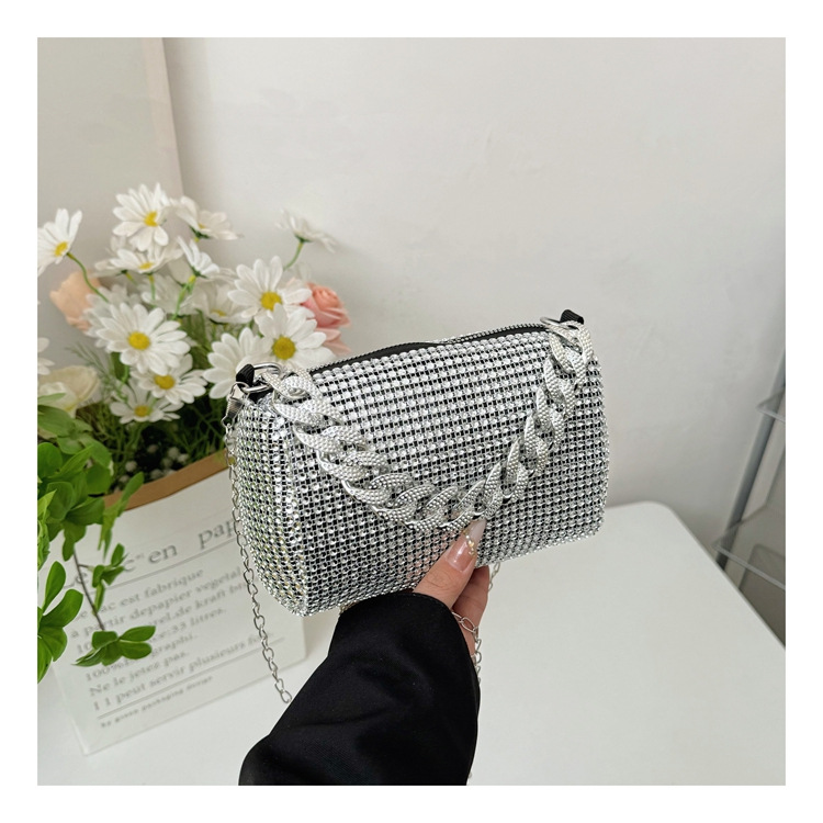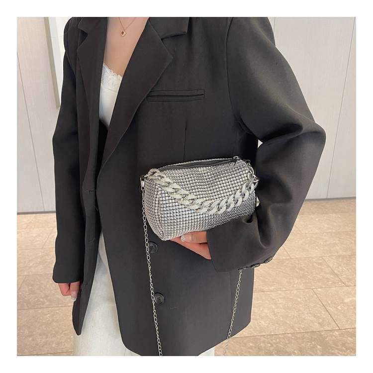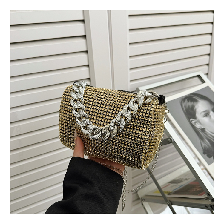 여성을위한 다이아몬드가 박힌 작은 사각형 가방 2025 새로운 유행 서양식 패션 겨드랑이 가방 간단한 체인 휴대용 크로스 바디 백