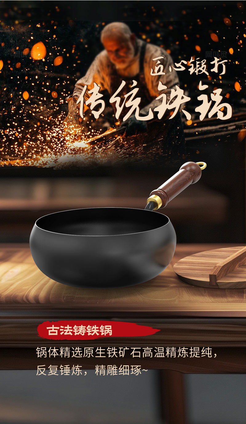 고대 대형 배꼽 냄비 철 냄비 수제 단조 작은 Wok 미니 작은 Wok 코팅되지 않은 스틱 가정용 워크