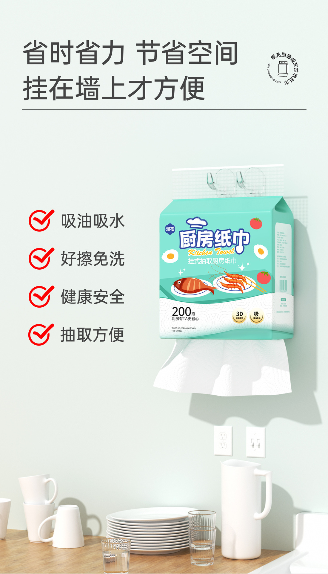 Manhua 주방 종이 타월 대량 배치 가정용 200 두꺼운 교수형 주방 종이 타월 청소 화장지 대형 팩