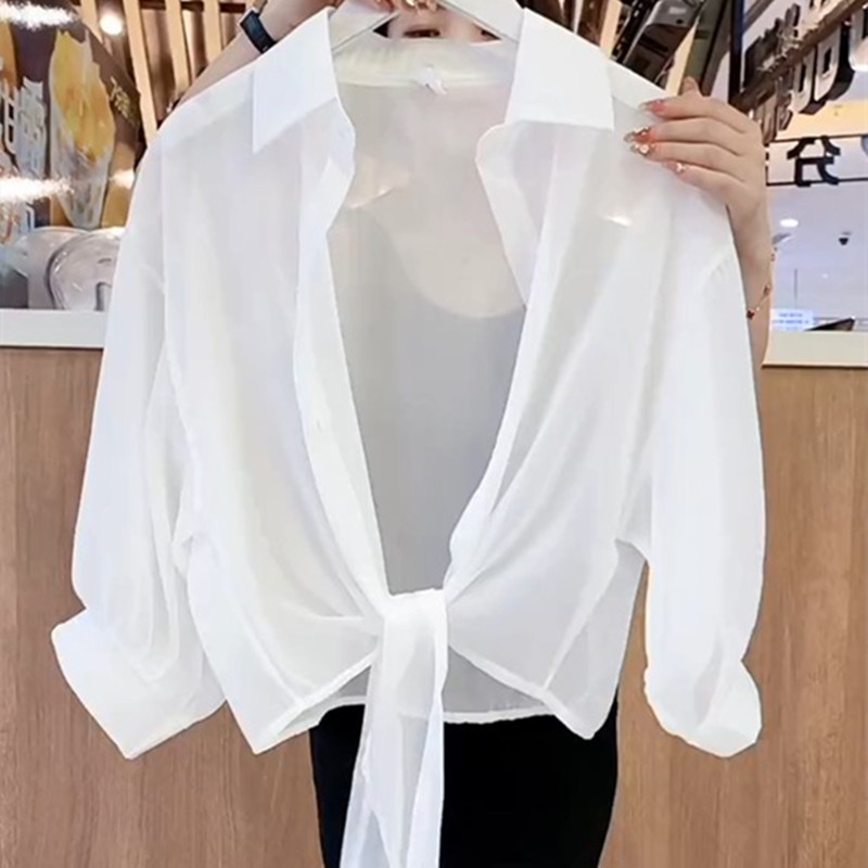 얇은 쉬폰 에어컨 셔츠, 작은 숄, 자외선 차단 셔츠, 여성용 짧은 트렌디 패션 탑, 여름 배트 가디건