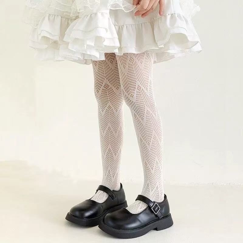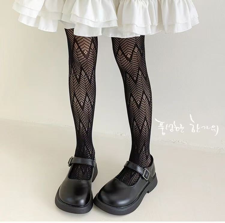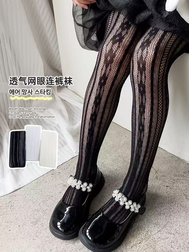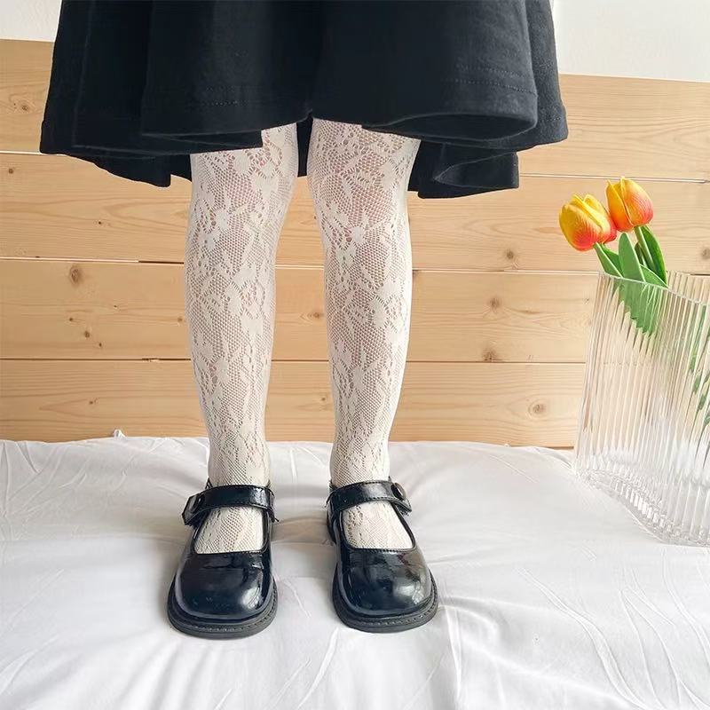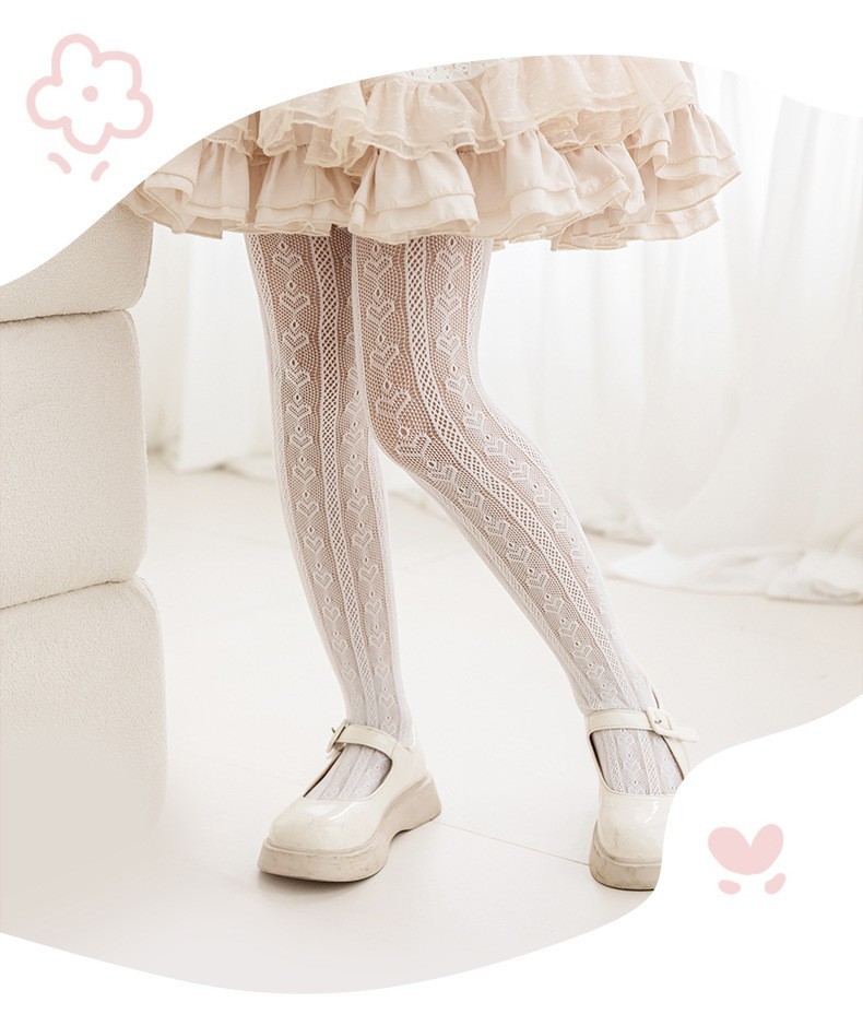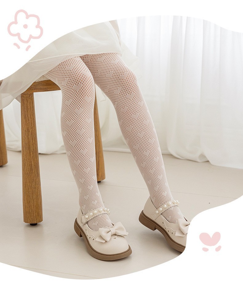 봄 여름용 얇은 여아용 레깅스, 하트 무늬 아동 로리타 양말, 아기용 스커트 레깅스, 망사 양말스토어 가기