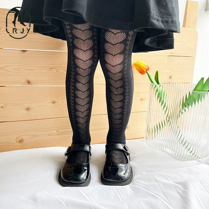 봄 여름용 얇은 여아용 레깅스, 하트 무늬 아동 로리타 양말, 아기용 스커트 레깅스, 망사 양말