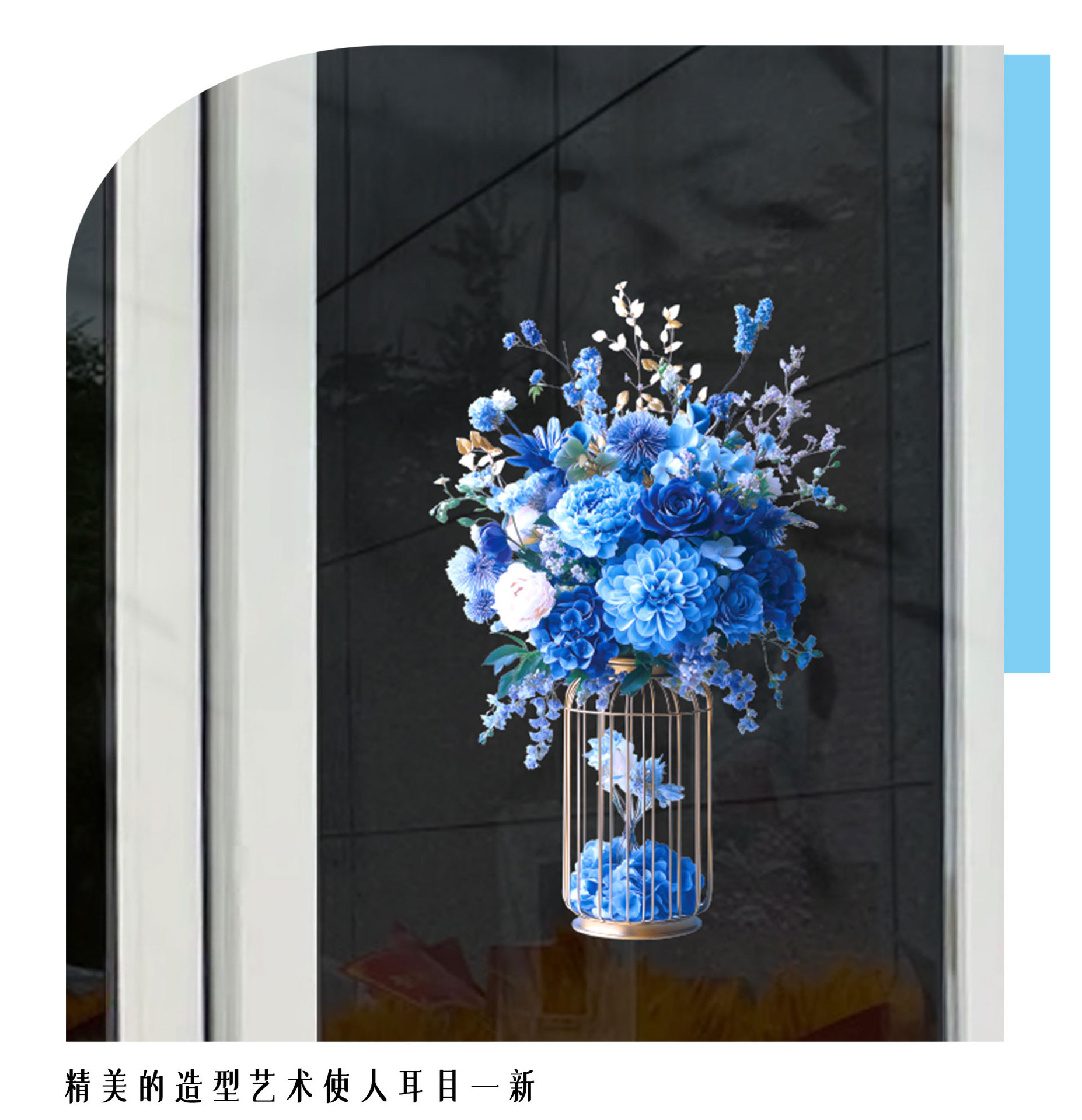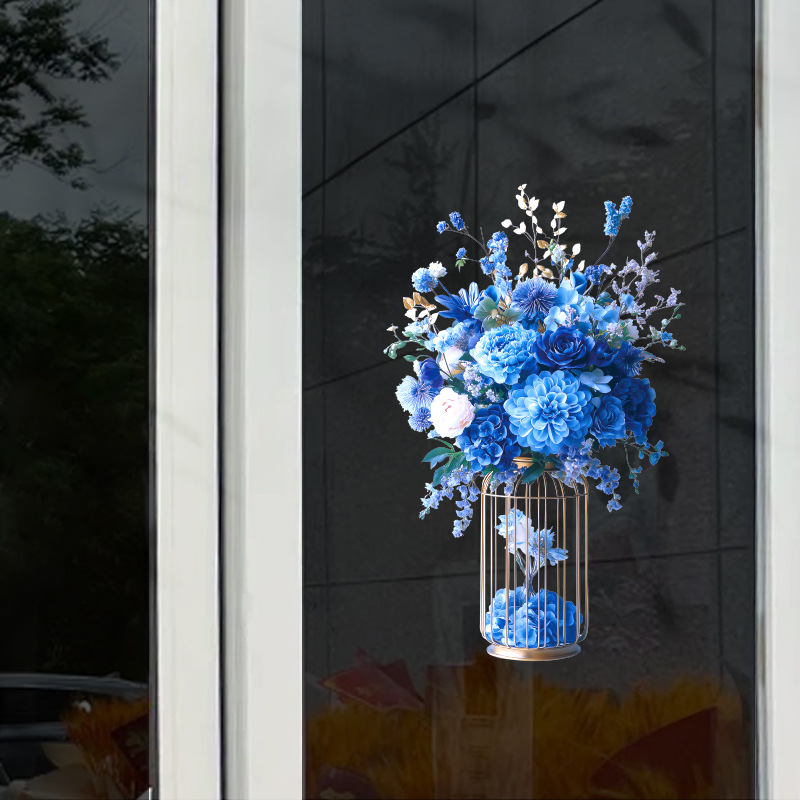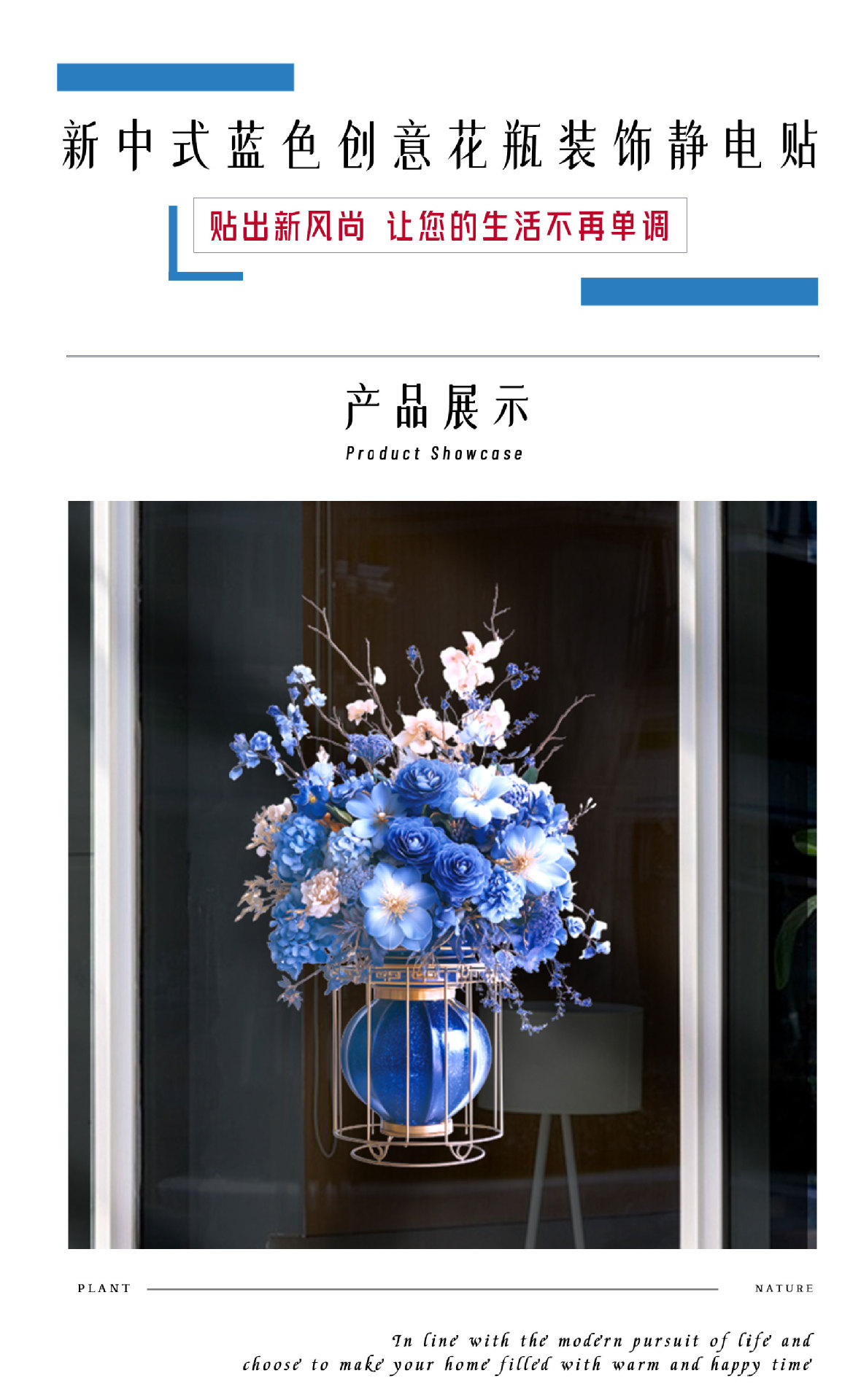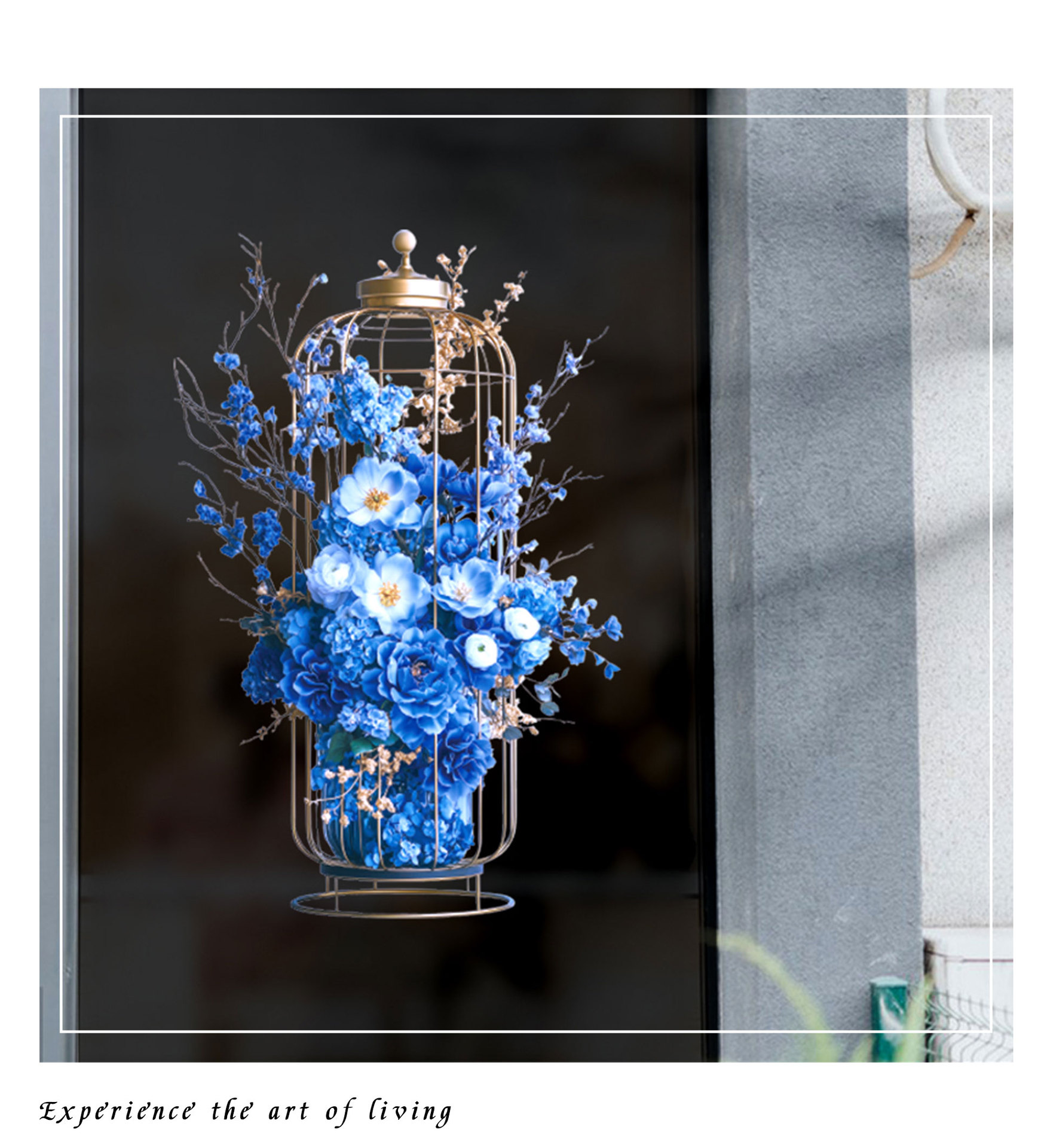 새로운 중국 스타일의 푸른 창조적 인 시뮬레이션 꽃 장식 주방 입구 거실 침실 상점 창 정전기 스티커 유리 스티커스토어 가기