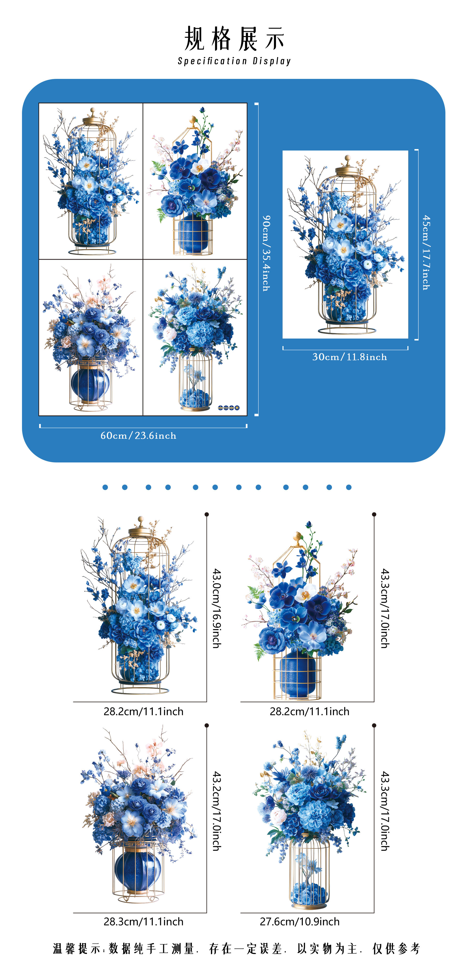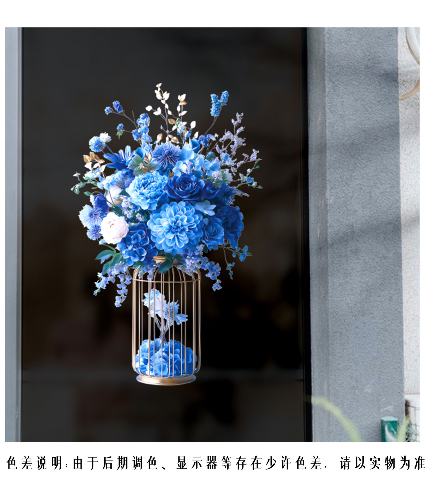 새로운 중국 스타일의 푸른 창조적 인 시뮬레이션 꽃 장식 주방 입구 거실 침실 상점 창 정전기 스티커 유리 스티커