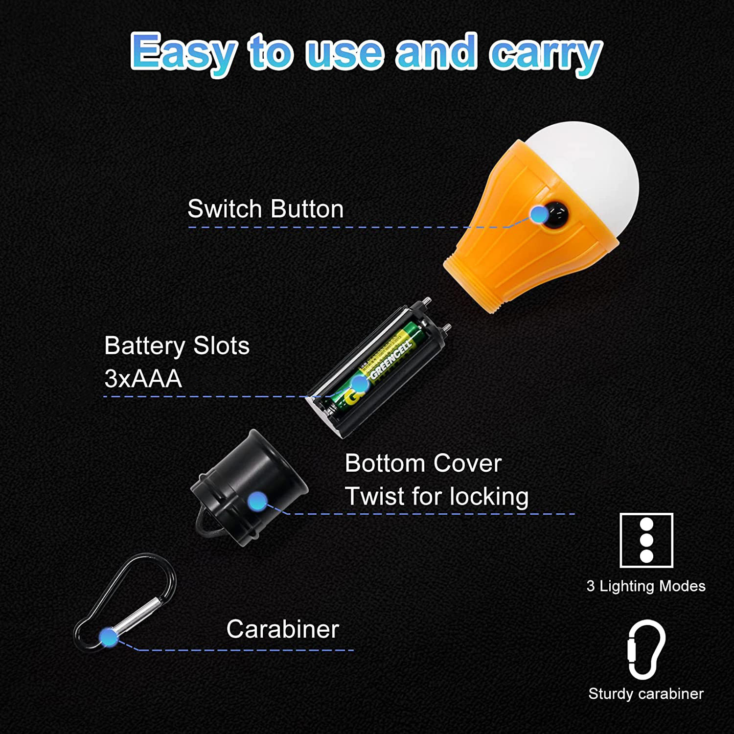 露营灯是由3节AAA电池供电,漫射光与3节能球LED灯泡。野营灯,挂在帐篷或树枝上的挂钩,这是一个很好的露营灯在露天的夜晚。