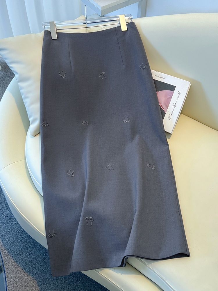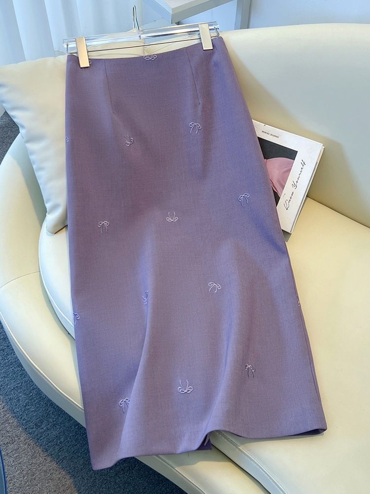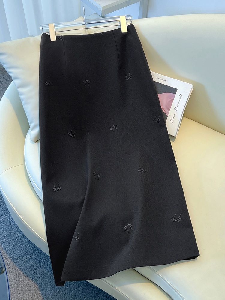 하이 엔드 세트 스커트 여성의 2025 봄과 가을 새로운 높은 허리 나비 자수 중간 길이 A 자형 분할 단계스토어 가기
