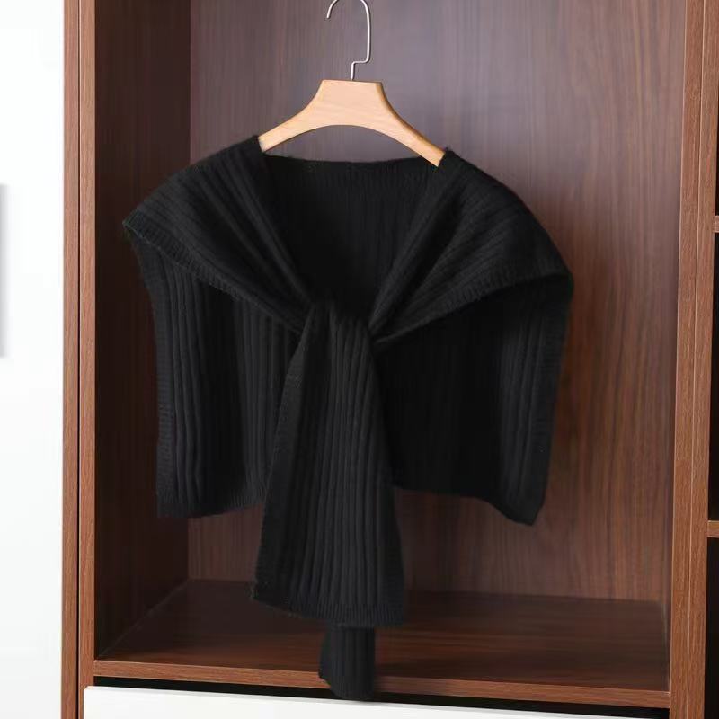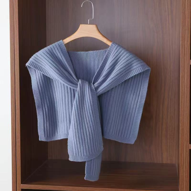 봄 가을 겨울 100% 양모 니트 작은 목도리 외부 구덩이 매듭 어깨 여성용 다기능 양모 스카프
