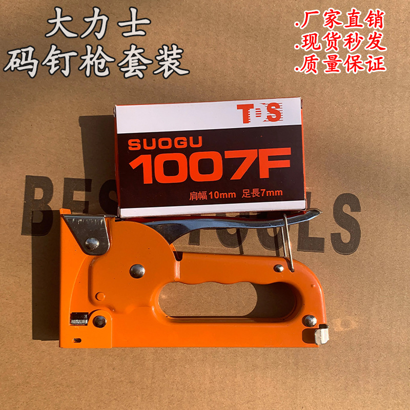 【名称】大力士码钉枪套装(大力士码钉枪+1007F一盒)