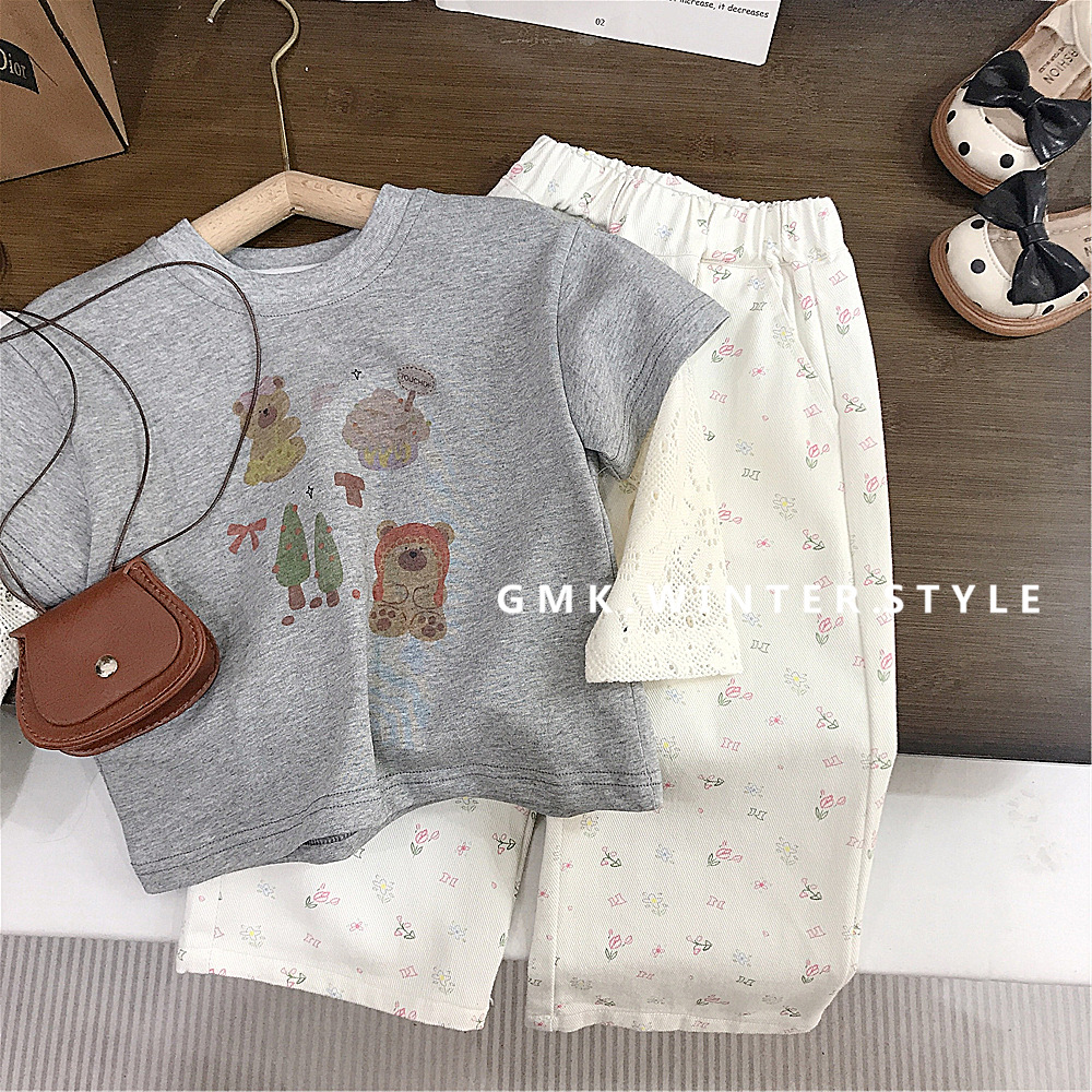 여성 아기 서양 패션 한국 캐주얼 레이스 세트 2025 봄과 가을 새로운 만화 달콤한 세트.스토어 가기