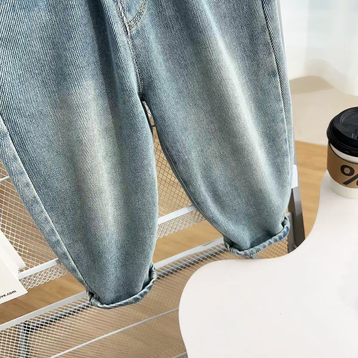 새로운 어린이 청바지 2025 봄 가을 소년 바지 자수 느슨한 캐주얼 한국 스타일 바지 아기 외부 바지 바지