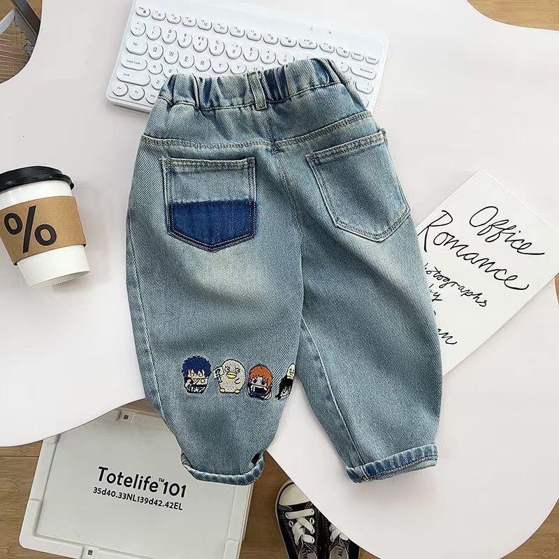새로운 어린이 청바지 2025 봄 가을 소년 바지 자수 느슨한 캐주얼 한국 스타일 바지 아기 외부 바지 바지스토어 가기