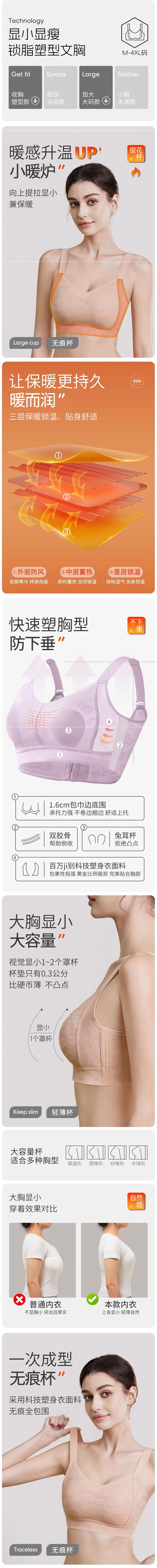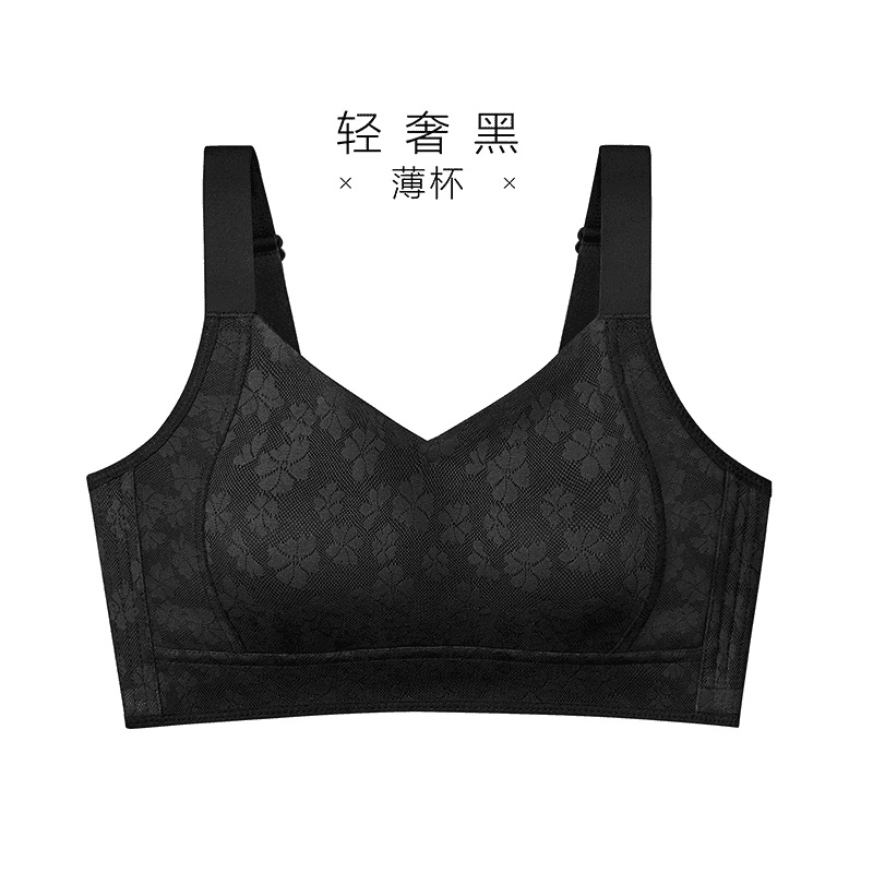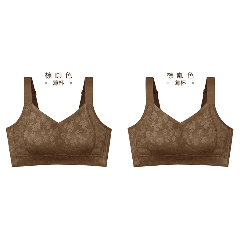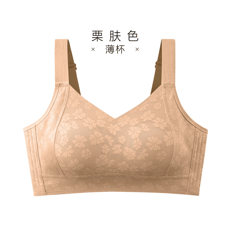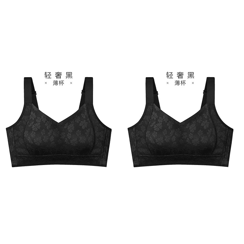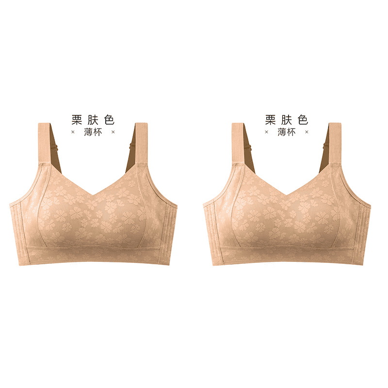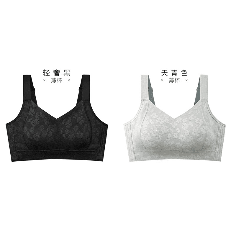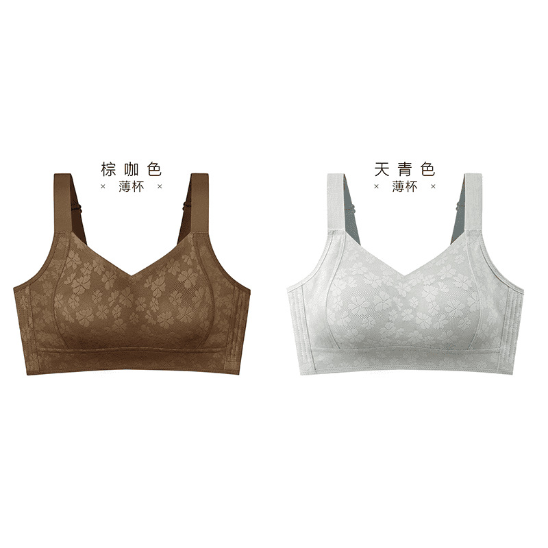 Xiangmi 스틸 링 속옷 여성 빅 가슴 쇼 작은 자카드 풀 컵 추적없는 사계절 스포츠 조정 브래지어