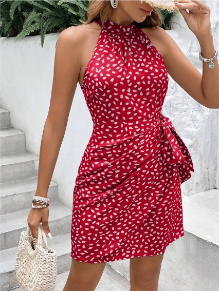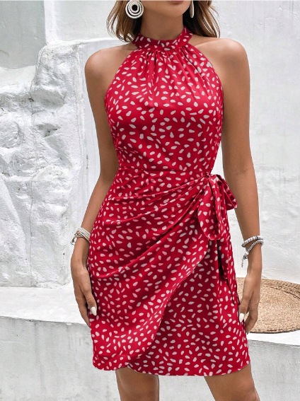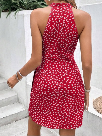 2025 유럽과 미국 아마존 국경 여성 여름 패션 새로운 목 지퍼 민소매 꽃 주름 짧은 원피스