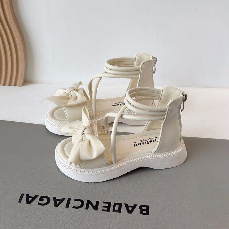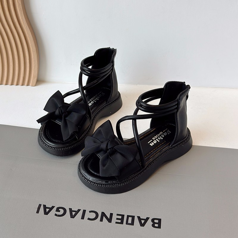 소녀 로마 신발 2025 여름 새로운 어린 소녀의 활 부드러운 단독 샌들 중대형 어린이 오픈 발가락 비치 슈즈 트렌디스토어 가기