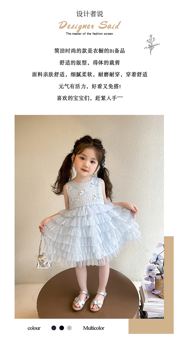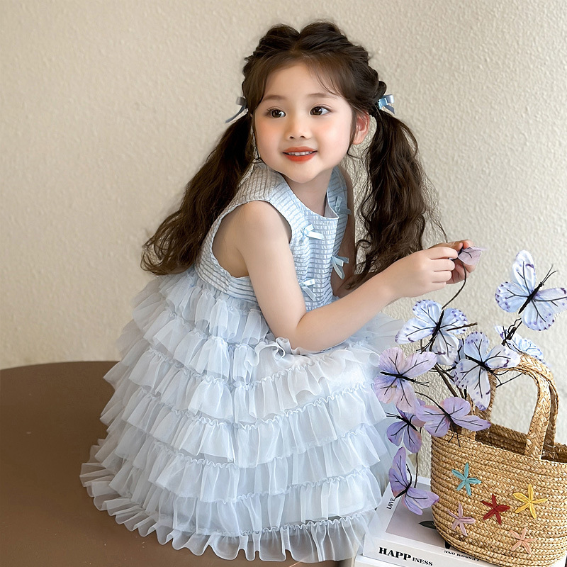 소녀의 활 원피스 베일 원피스 2025 여름 새 패션 소녀의 세련된 공주 원피스 중소 어린이 원피스스토어 가기